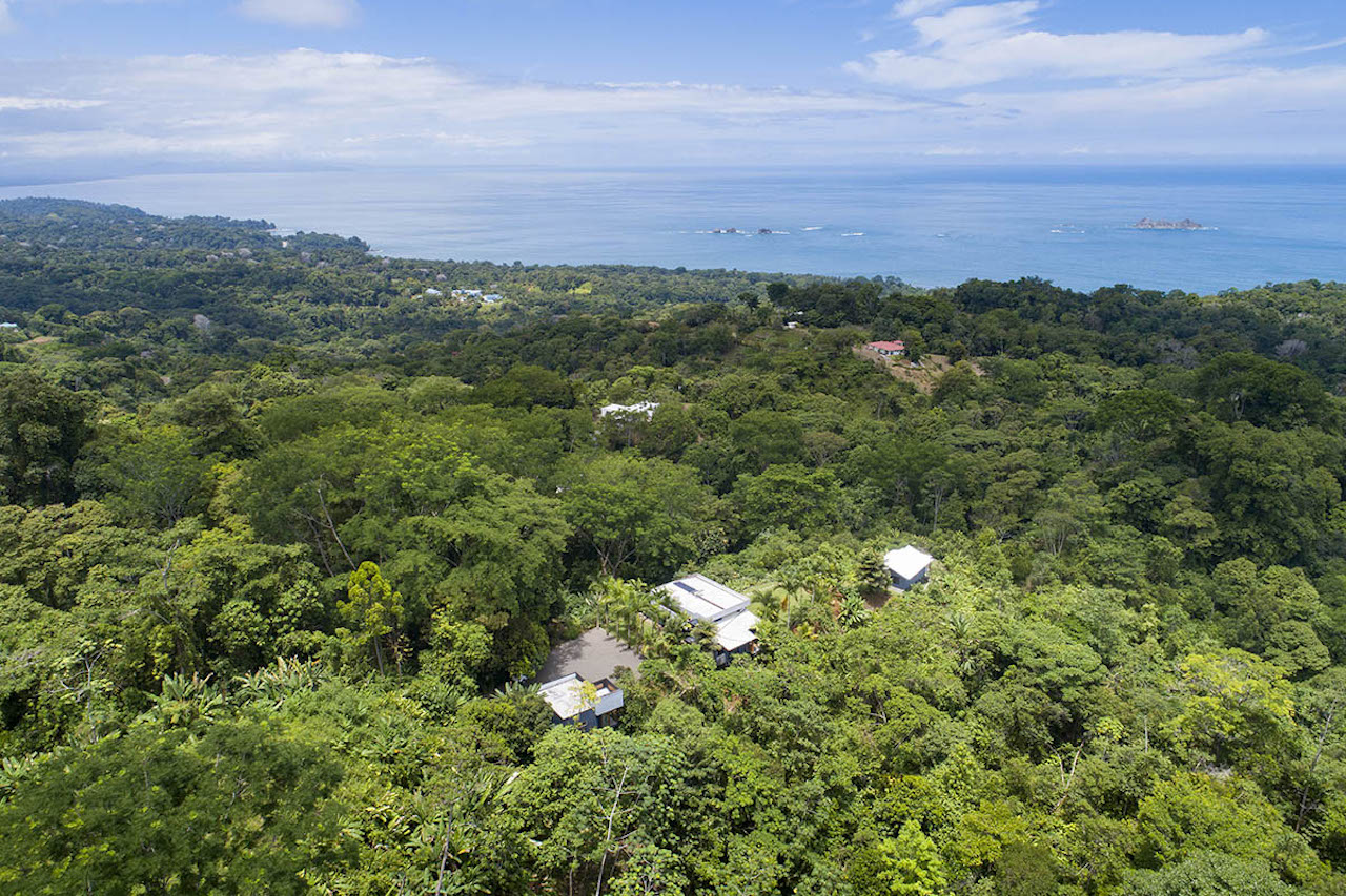 The main residence, positioned on the north end, unveils two-bedroom suites with an open bathroom plan, enveloped by mature Ylang-Ylang trees and the seclusion of the jungle. Gleaming, polished concrete floors guide you through an open floor plan, leading to a gourmet kitchen with stainless steel appliances. The private dining room seamlessly merges with the sunset, offering an ideal space for entertaining.