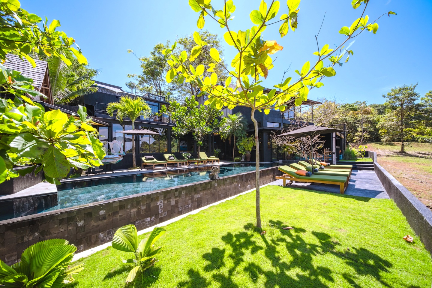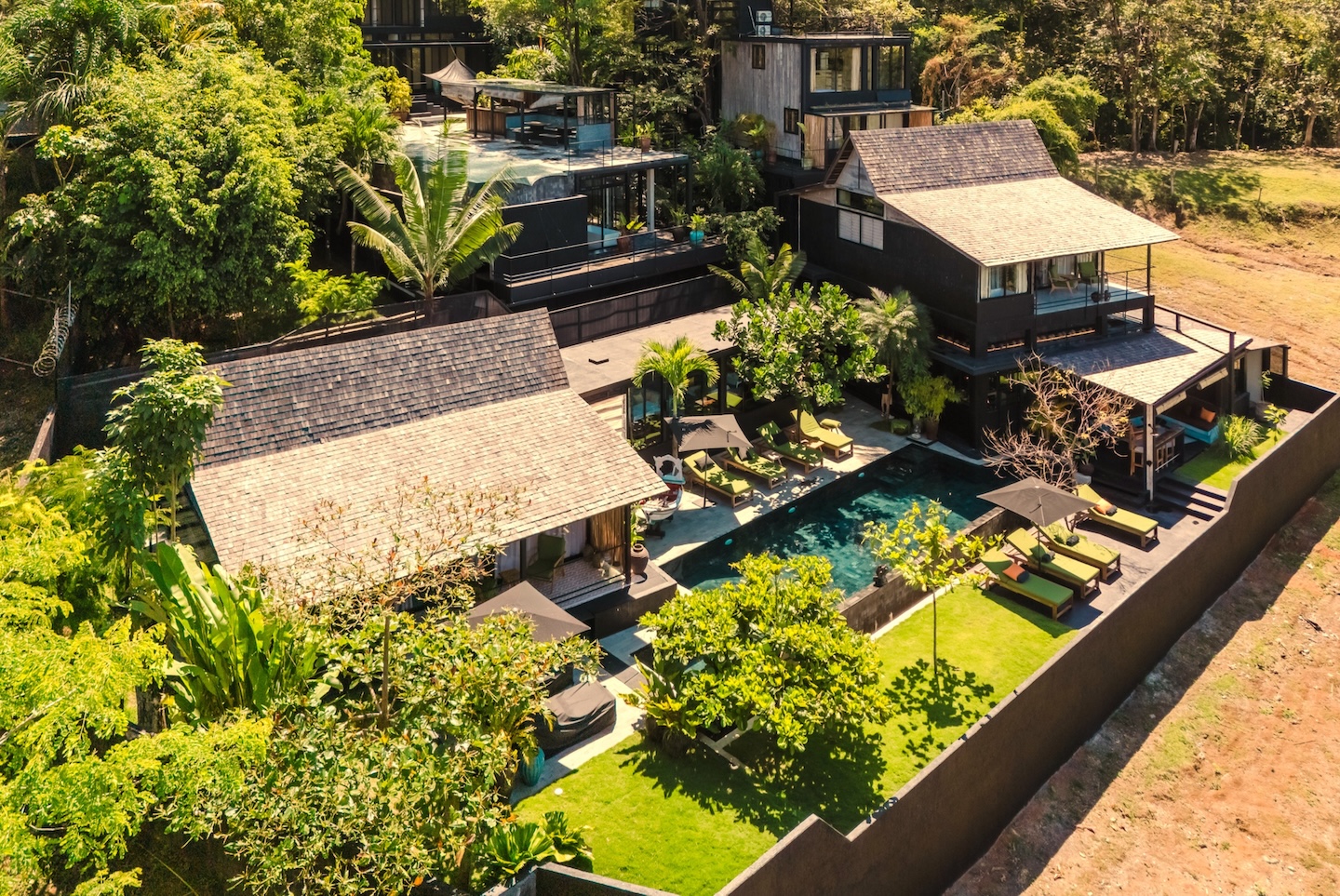 Rodeada de exuberante vegetación tropical, la propiedad ha sido diseñada para integrar armoniosamente los espacios interiores con el entorno natural, ofreciendo múltiples áreas de descanso, acabados naturales de alta calidad y una atmósfera de tranquilidad absoluta.