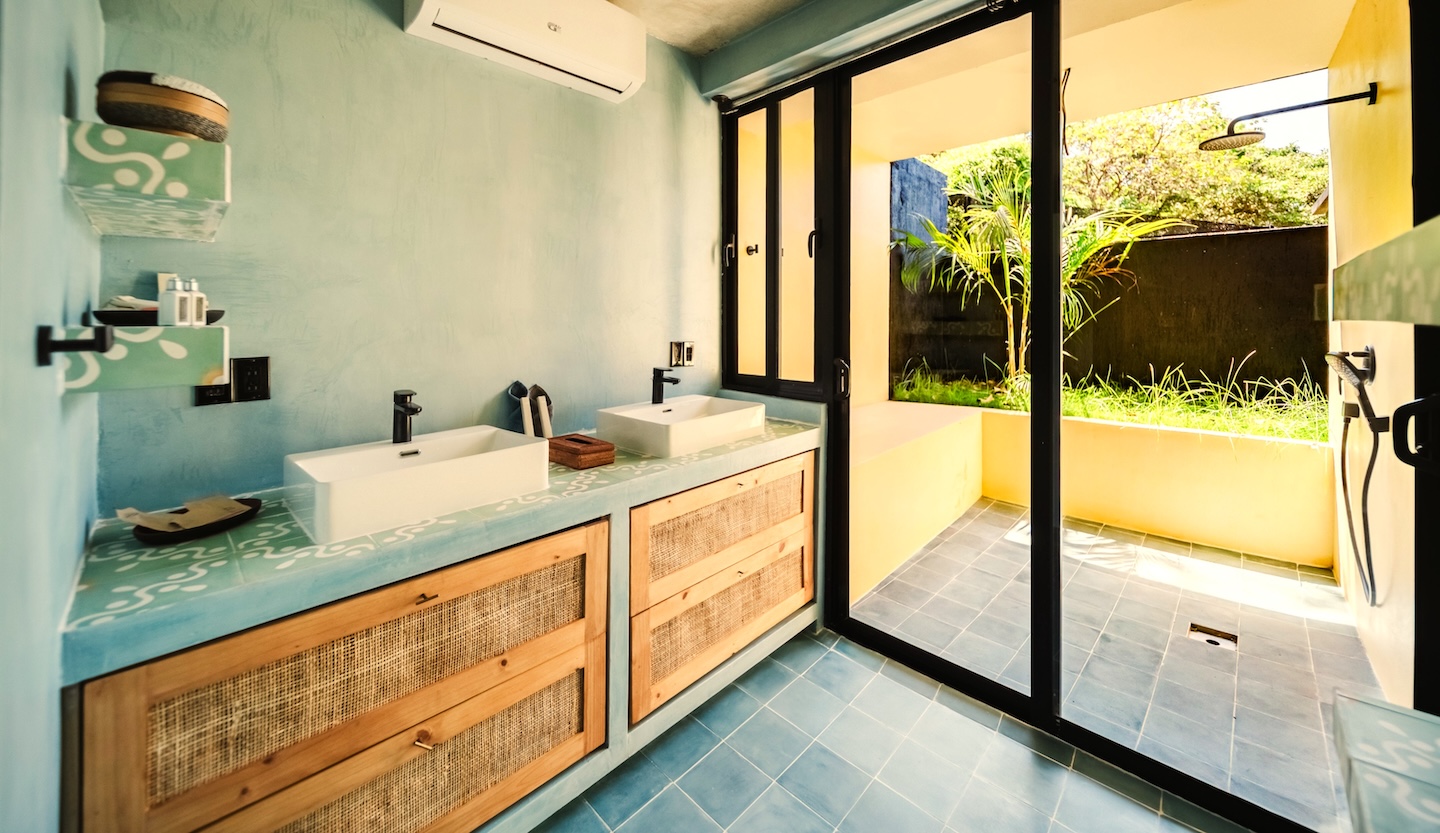 Casa Java se complementa con una elegante piscina infinita, ducha exterior y tres baños adicionales para invitados, distribuidos estratégicamente en distintos niveles para mayor comodidad durante reuniones o estancias compartidas.