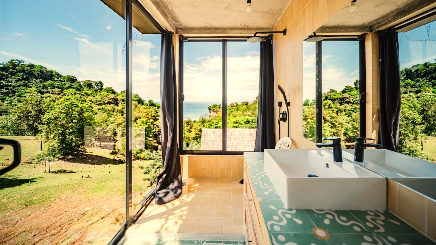 Casa Java is complemented by an elegant infinity pool , outdoor shower and three additional guest bathrooms , strategically distributed on different levels for greater convenience during meetings or shared stays.