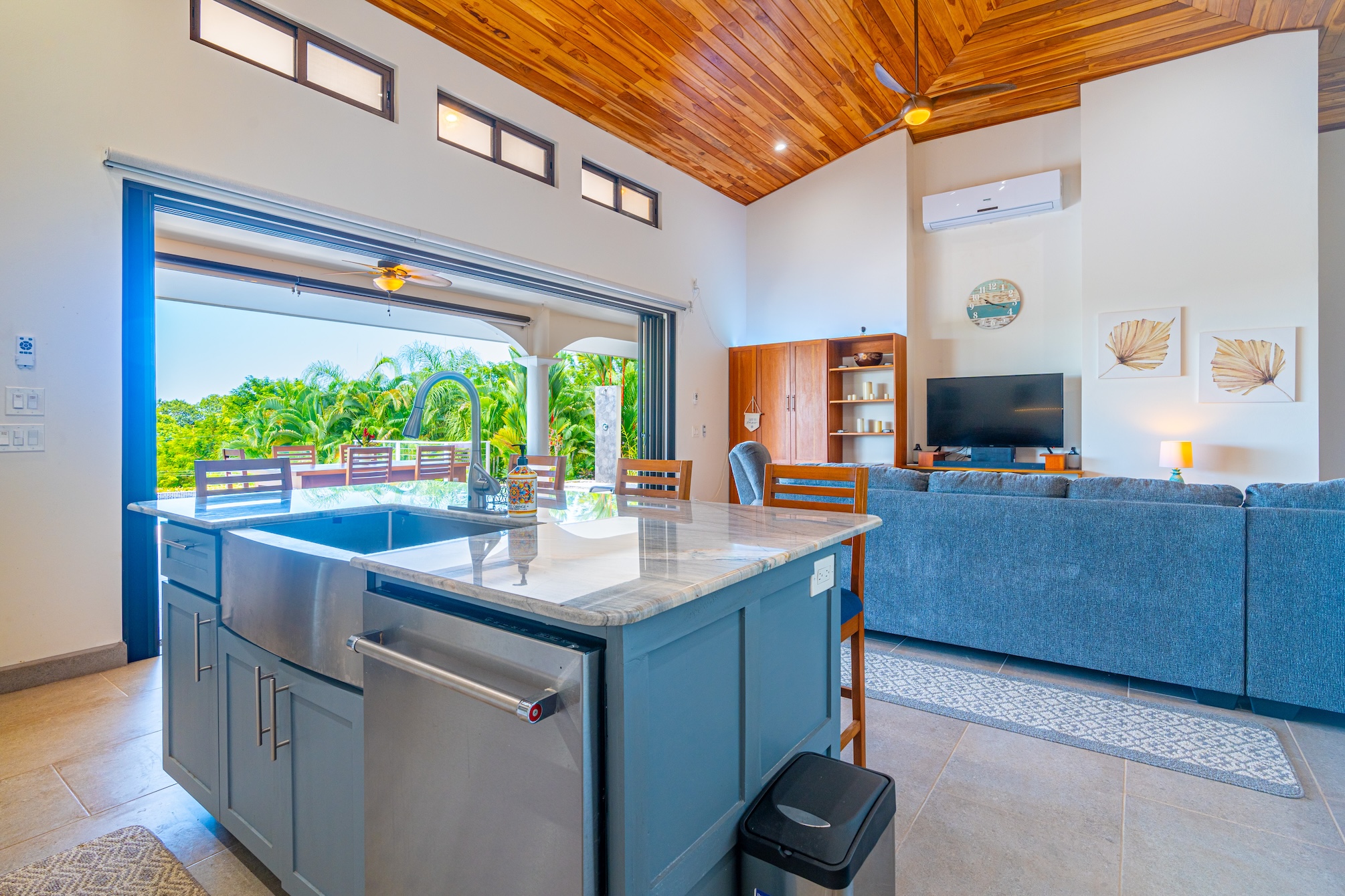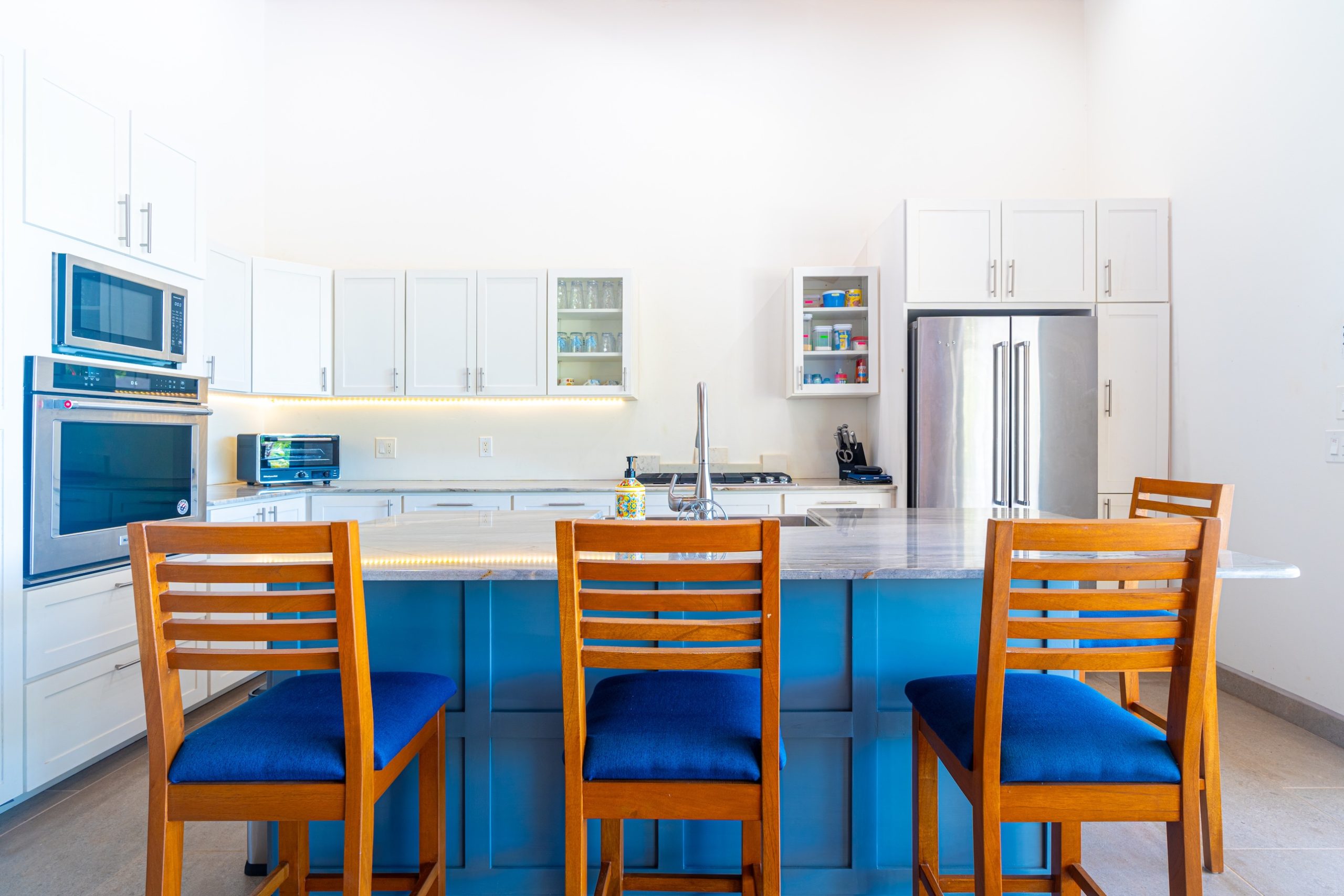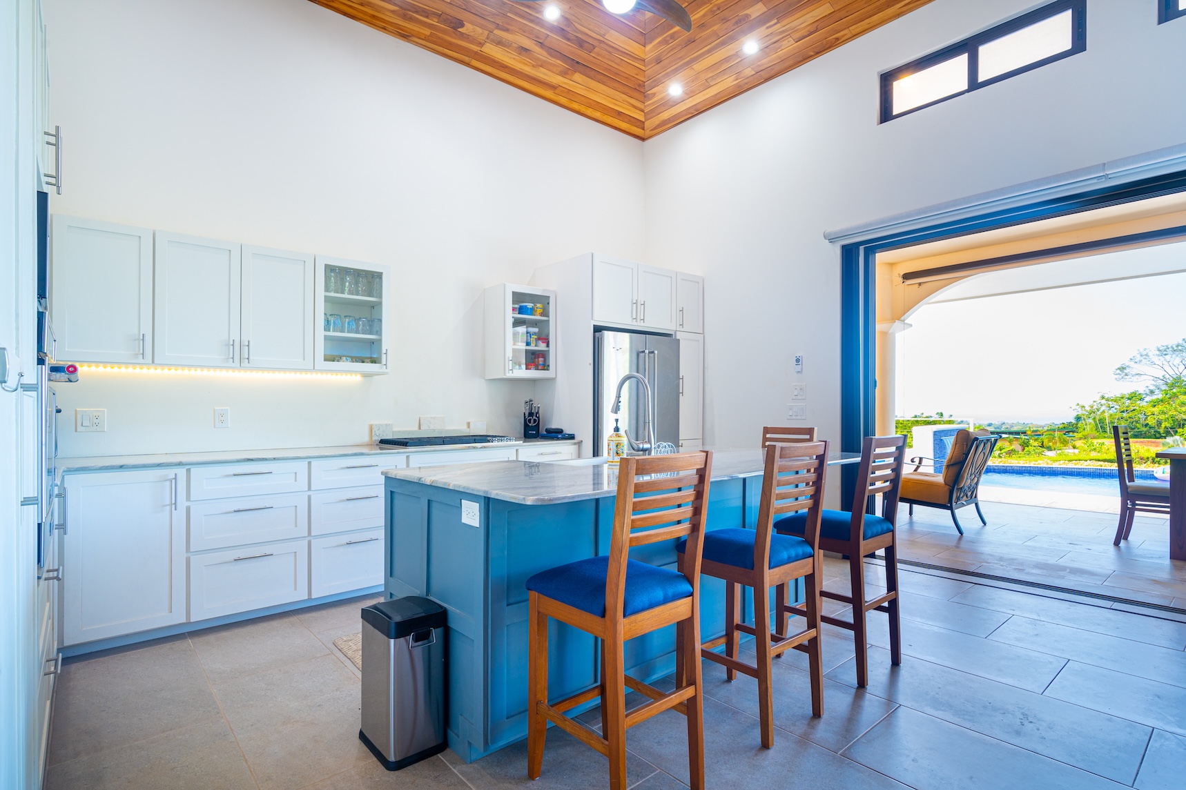 La cocina, equipada con electrodomésticos premium y una gran isla con asientos, es perfecta para disfrutar y compartir.