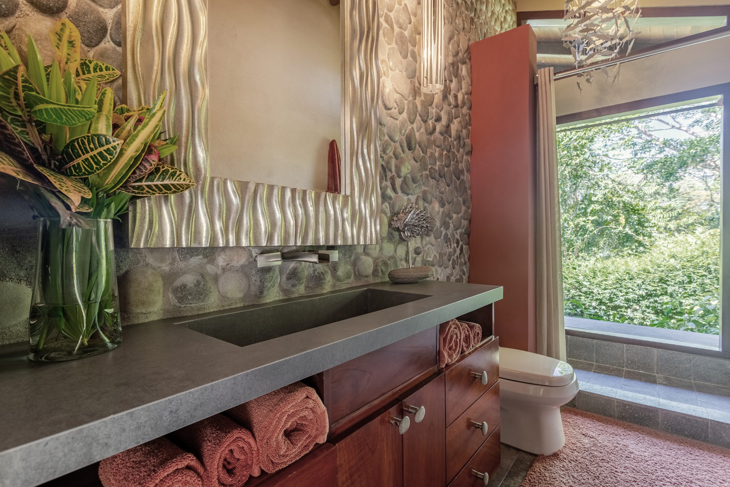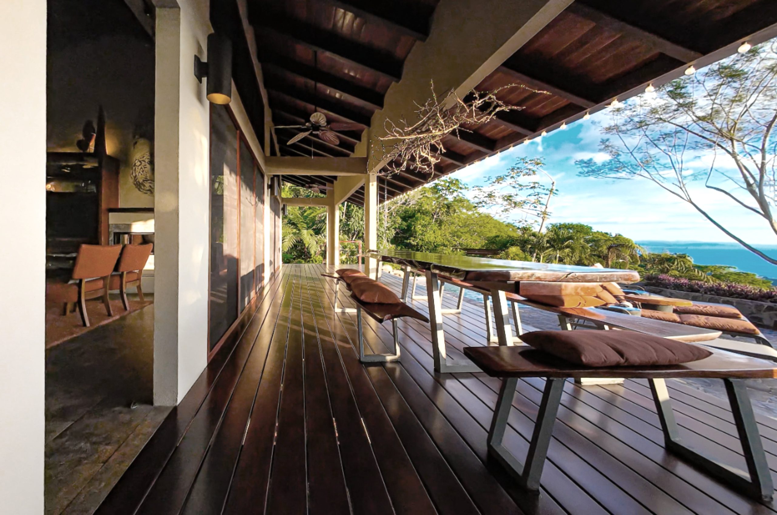 The 258 m² home is carefully positioned to capture a sweeping 180° panoramic view of the Pacific Ocean, showcasing spectacular sunsets that stretch from the Osa Peninsula to Isla del Caño. Constant ocean and mountain breezes keep the environment fresh and comfortable throughout the day.