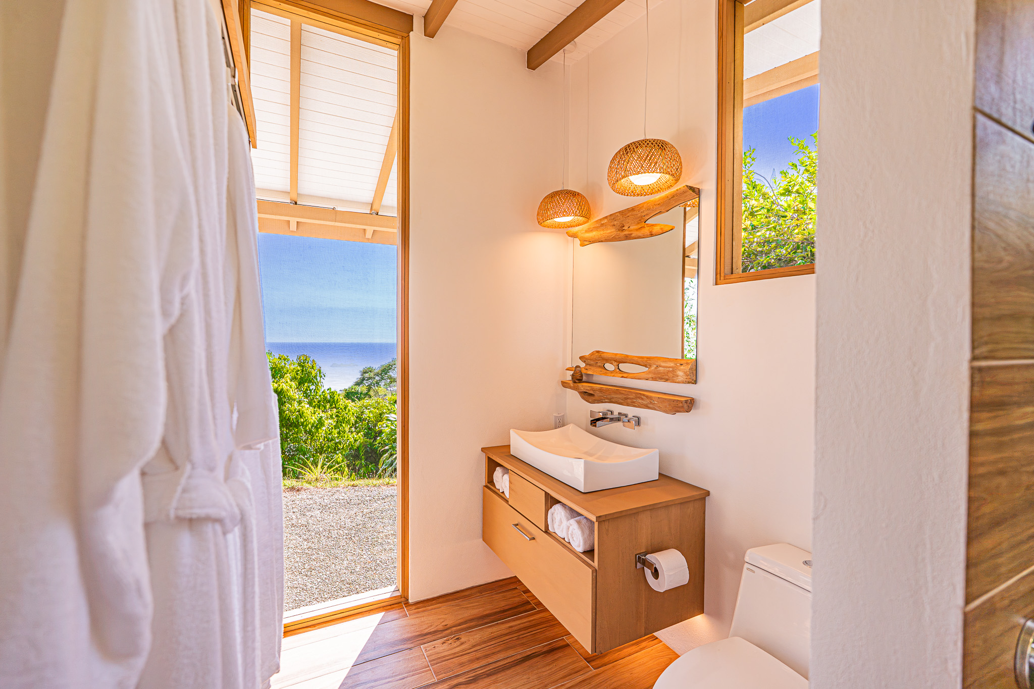A pesar de su entorno apartado, se ubica a solo 12 minutos de la Costanera, con acceso rápido a playas, restaurantes y servicios. Rodeada de bosque primario protegido y con vistas hacia el Parque Nacional Marino Ballena, es un lugar donde la biodiversidad se vive a diario, con presencia constante de fauna como tucanes, guacamayas, monos y otras especies silvestres.