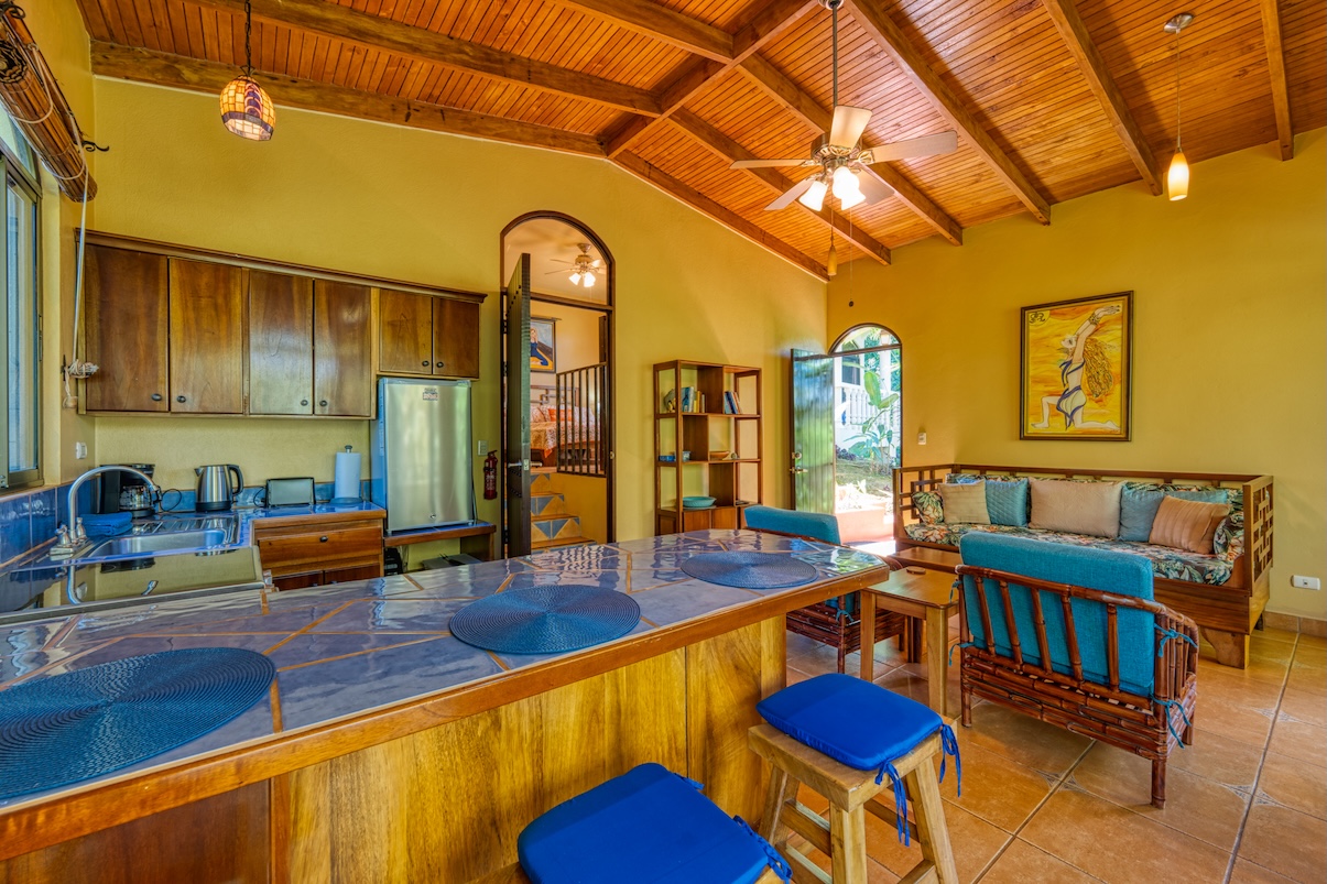 The center’s kitchen prepares a delicious fusion of local and international cuisine, always using fresh, organic ingredients sourced from local farmers. Meals are enjoyed in a spacious dining area overlooking the jungle, a perfect space for socializing or relaxing by the pool.
