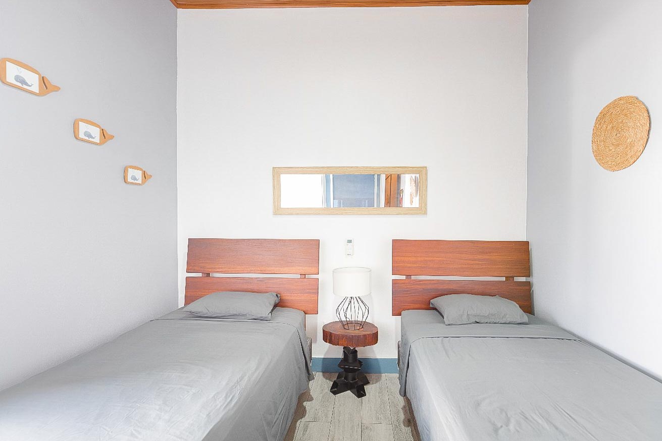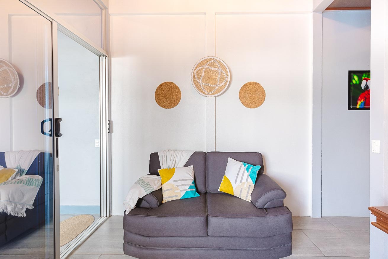 The two-story main building reflects the same tropical and functional spirit. With exterior corridors and an open layout , its 12 units (eight two-bedroom apartments and four one-bedroom apartments) are arranged around the pool area, allowing everyone to enjoy the relaxing and visually stunning central ambiance.