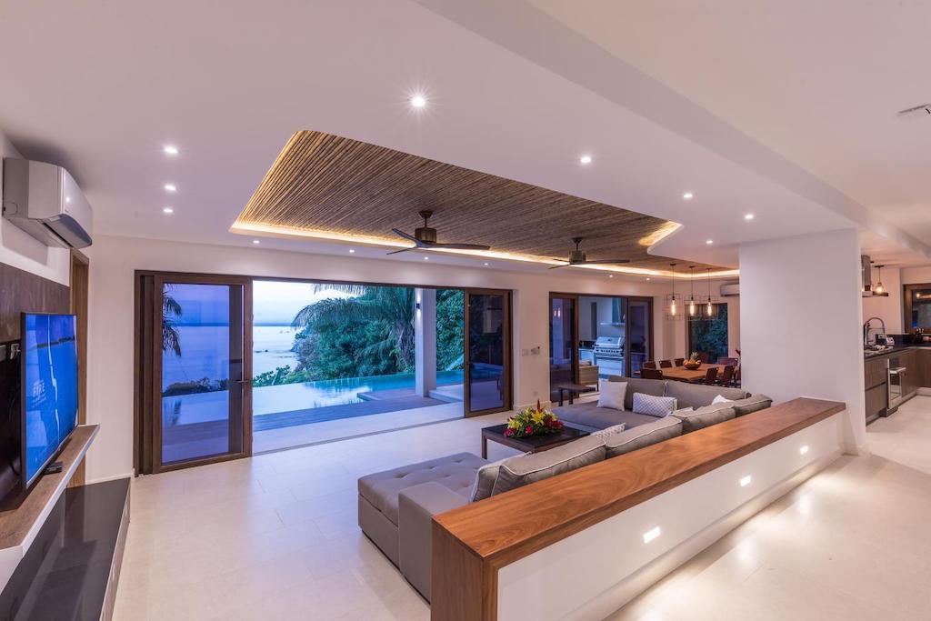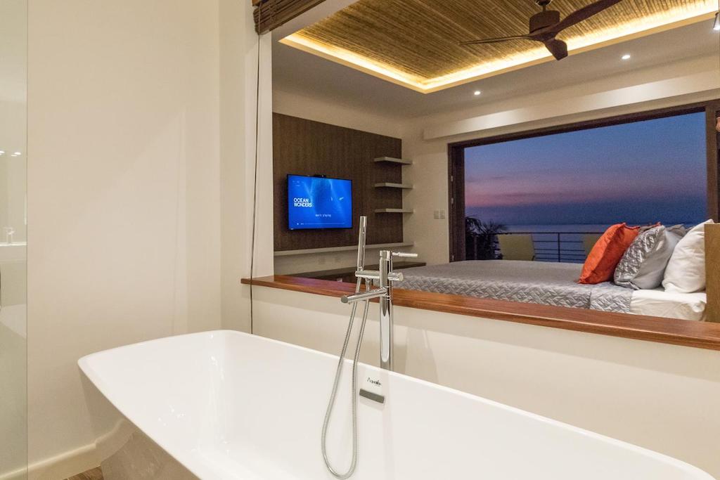 Cada uno de los seis dormitorios cuenta con un baño privado completo, lo que brinda máxima comodidad y privacidad. El dormitorio principal en el segundo piso ofrece una experiencia elevada en suite con bañera y ducha orientadas para maximizar la vista al mar. Cuatro de los dormitorios cuentan con televisores inteligentes de 50 ”, amplios armarios y terrazas con vista al mar. El quinto dormitorio, ubicado más allá de la cocina en el nivel principal, está equipado con literas, lo que lo hace ideal para niños. El dormitorio principal en el piso principal, adyacente a la sala de estar, es perfecto para invitados o para aquellos que prefieren evitar las escaleras.