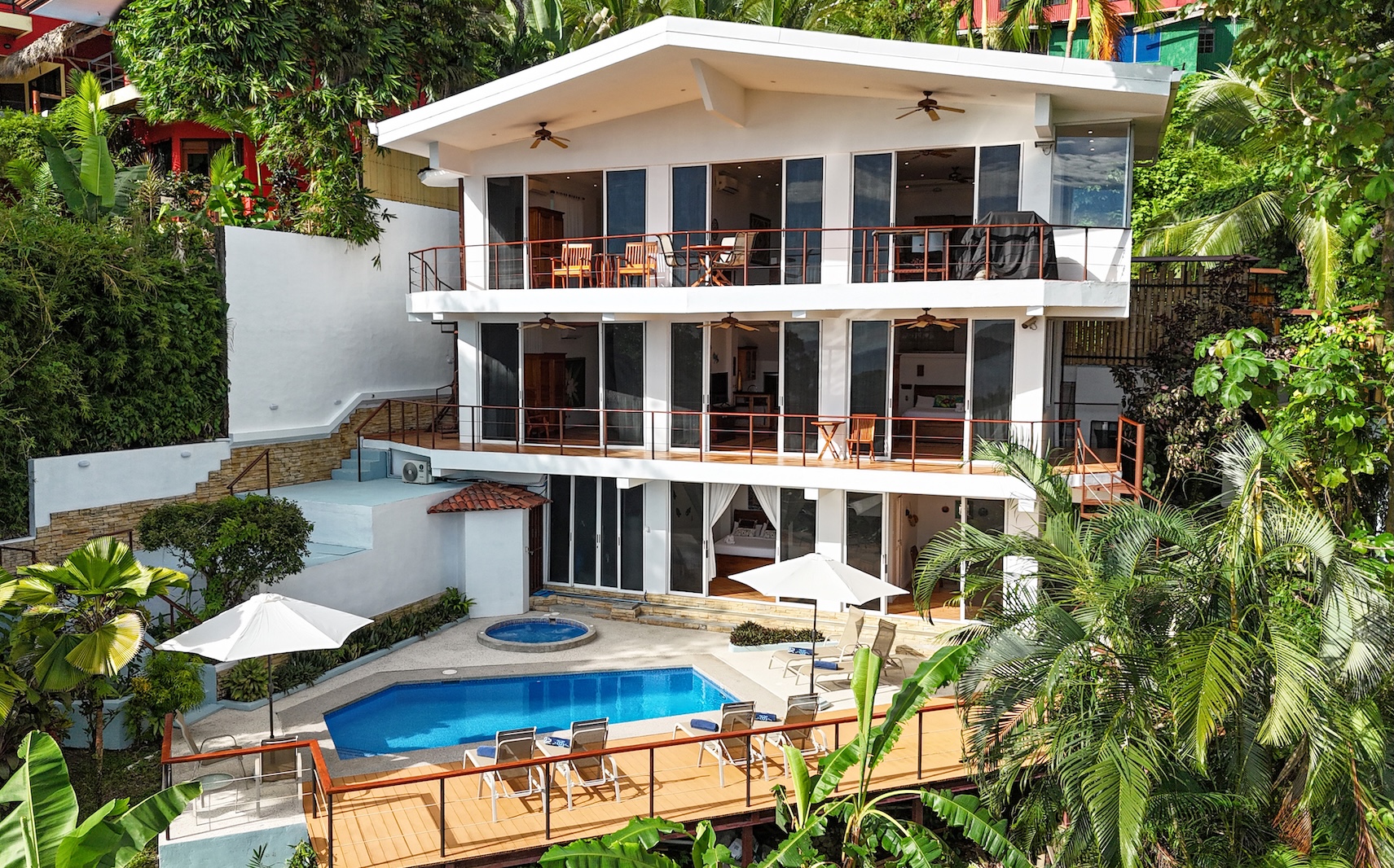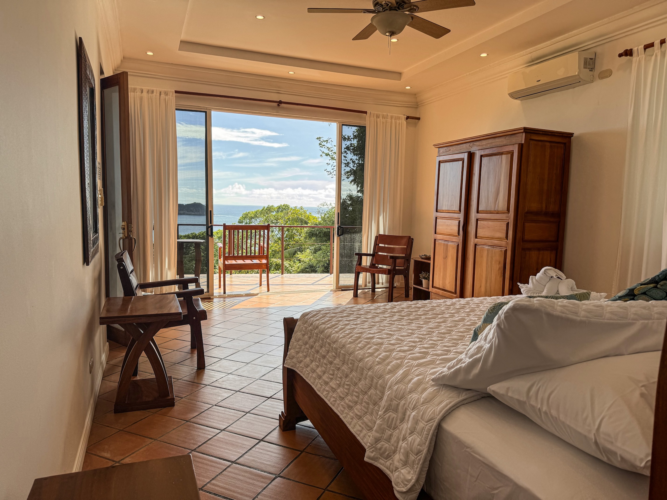 Diseñada con atención al detalle y enfocada en el bienestar, esta villa de tres niveles cuenta con 4.5 baños elegantemente equipados y aire acondicionado en todas las habitaciones, garantizando frescura y comodidad durante toda su estadía. Los balcones en los dos niveles superiores ofrecen vistas impresionantes del océano, la selva tropical y los alrededores, donde es común avistar monos, perezosos y coloridas aves que habitan este paraíso natural.
