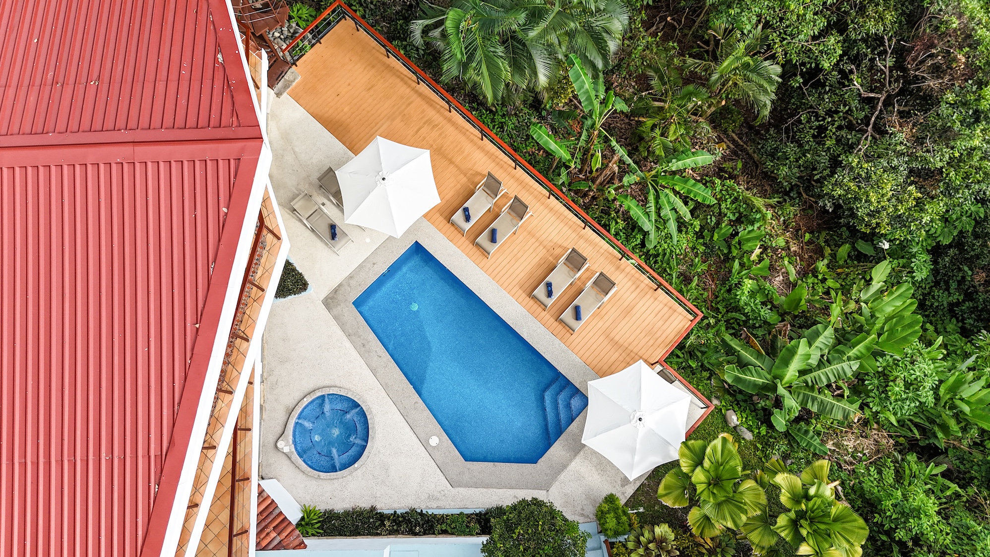Designed with meticulous attention to detail and focused on well-being, this three-level villa features 4.5 elegantly appointed bathrooms and air conditioning in every room , ensuring coolness and comfort throughout your stay. The balconies on the two upper levels offer breathtaking views of the ocean, the rainforest, and the surrounding area, where it’s common to spot monkeys, sloths, and colorful birds that inhabit this natural paradise.
