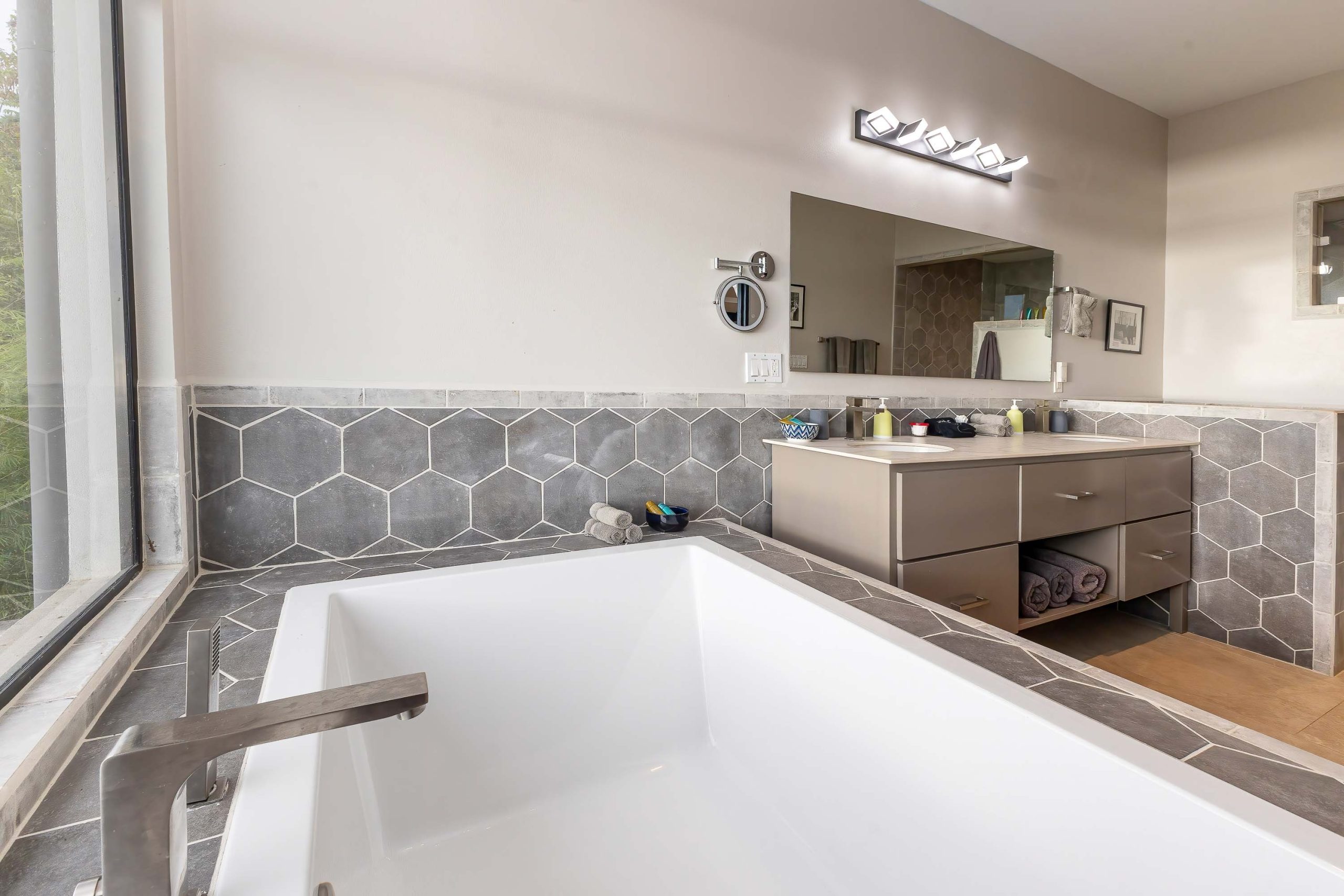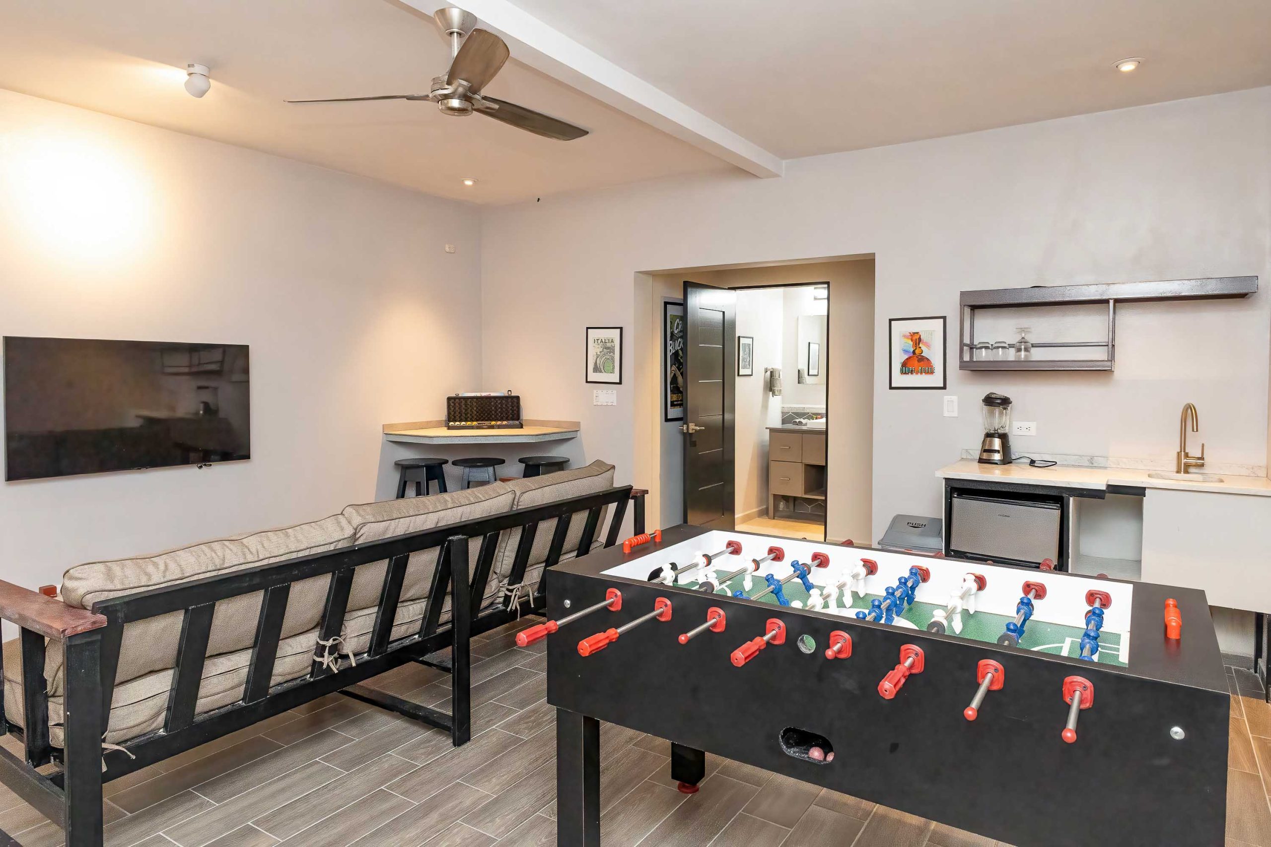 Designed for entertaining, the property offers multiple social areas crafted for a complete sensory experience. Highlights include a fully equipped bar adjacent to a large jacuzzi accommodating up to 14 people, a chef’s kitchen ideal for large events and gatherings, and a spacious dining room comfortably seating 14 guests. In addition, three sink bars located throughout the main social areas further enhance its appeal for celebrations, private retreats, and high-performing vacation rentals.
