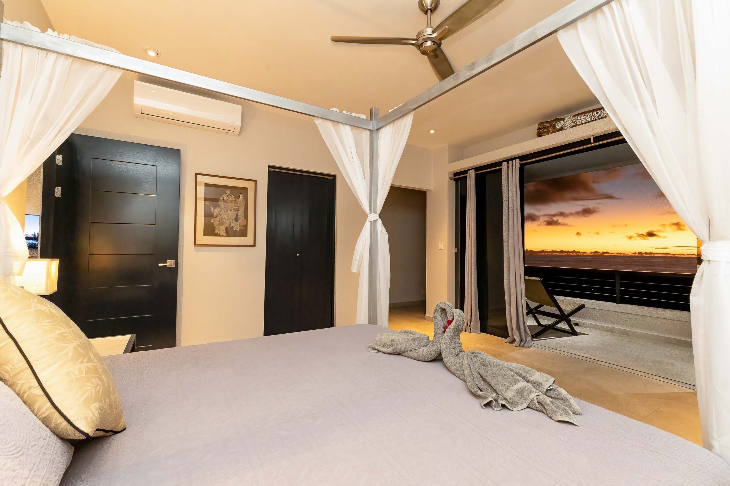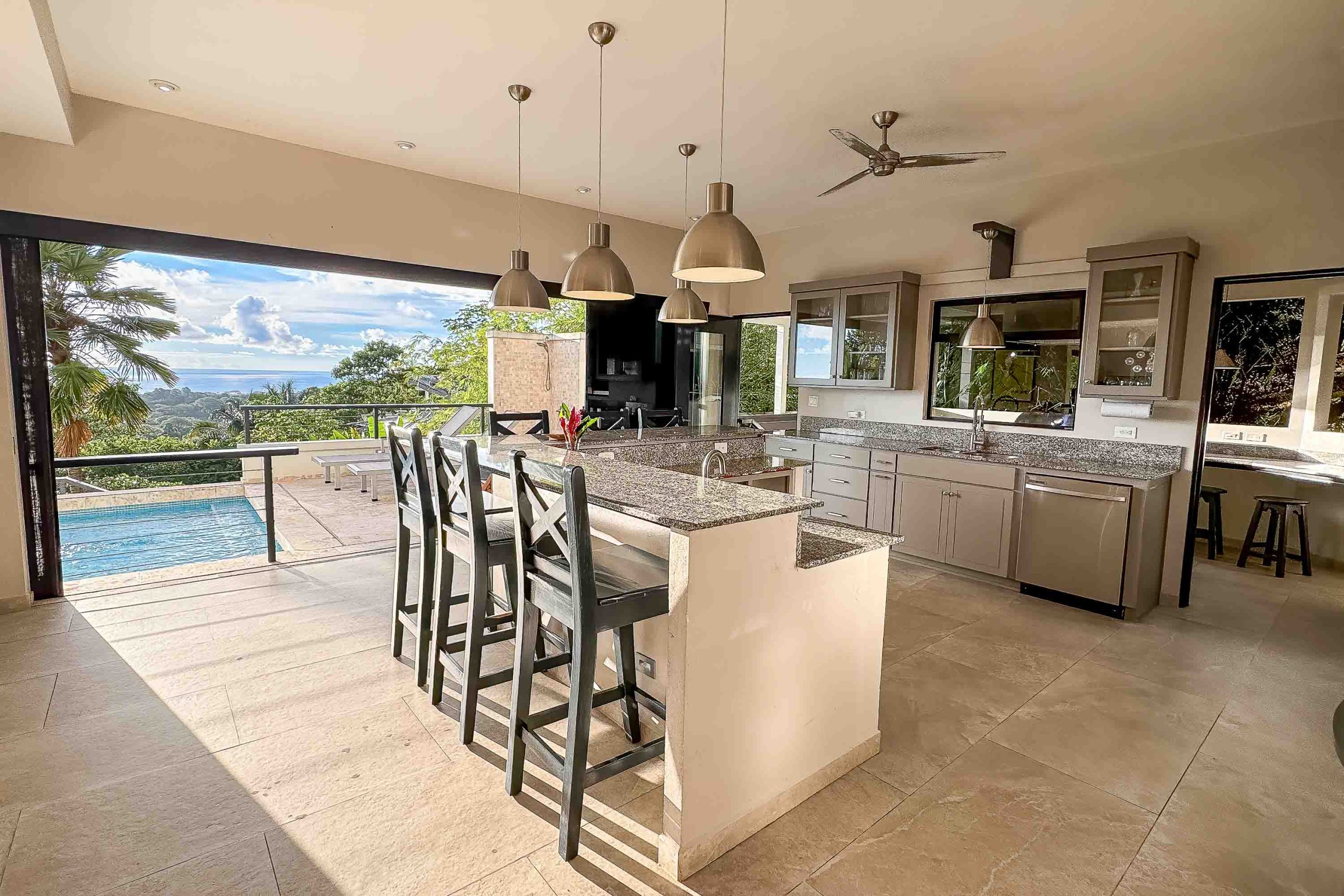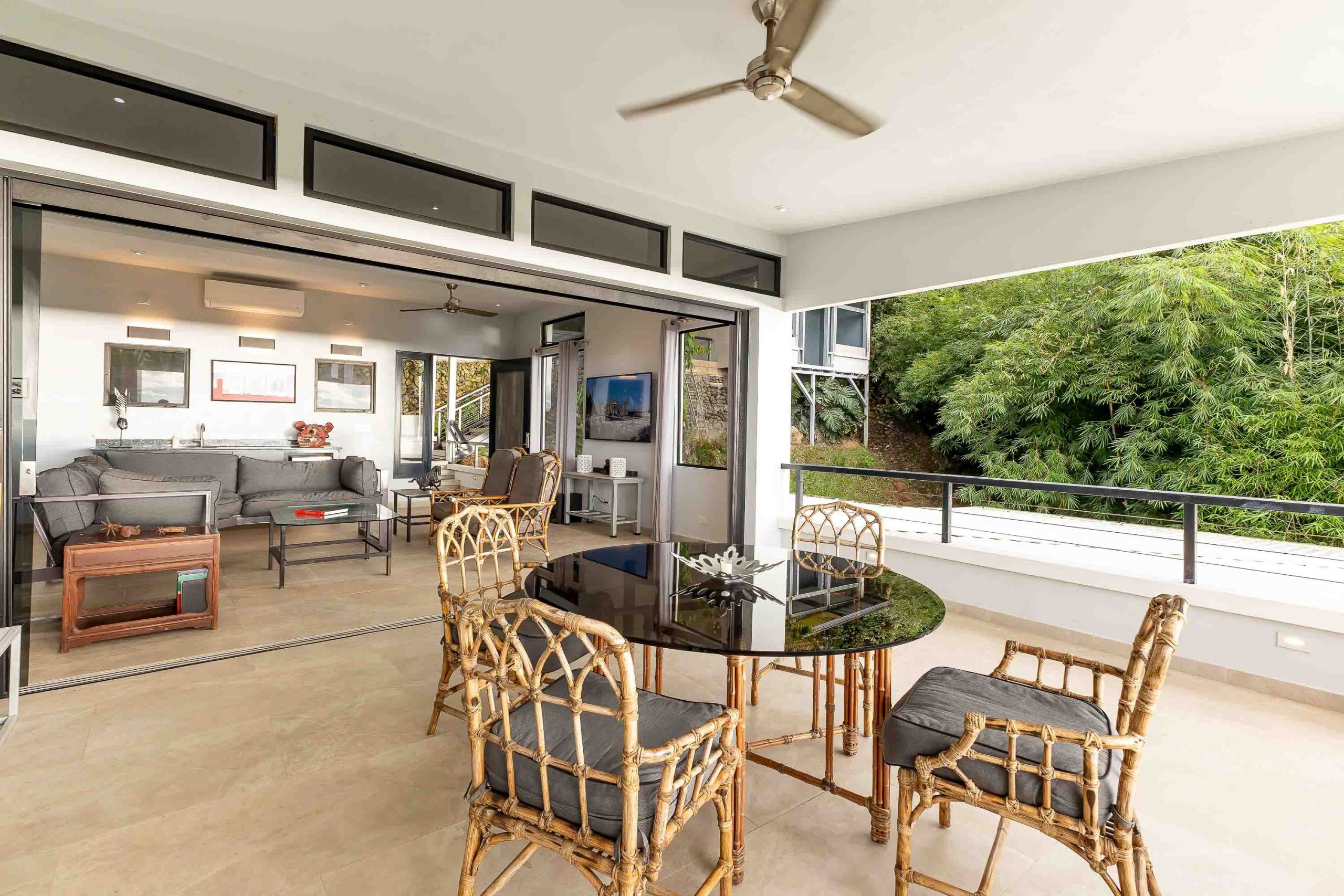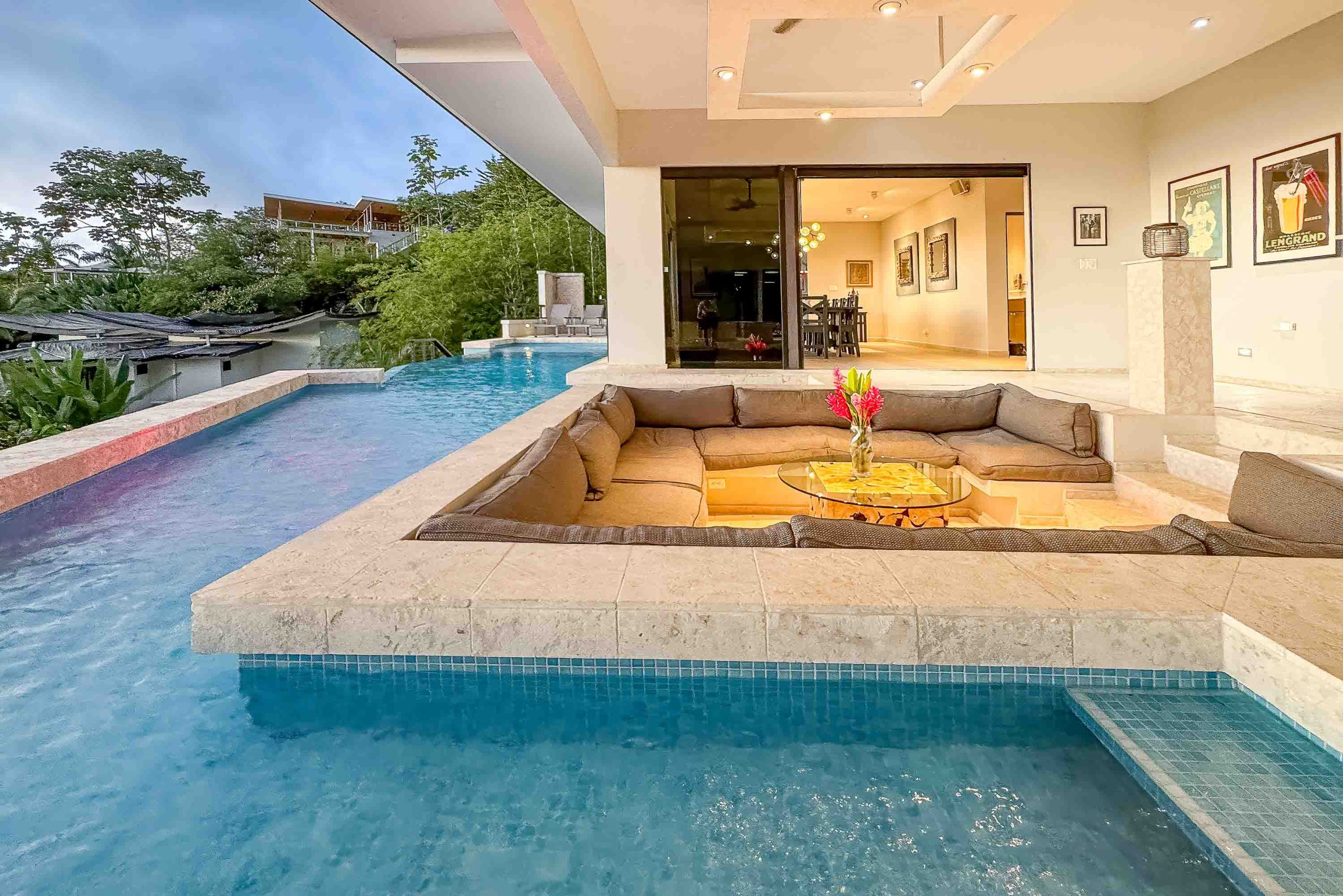 En su interior, la villa ha sido cuidadosamente concebida para el descanso y el bienestar. Varias de sus habitaciones disfrutan de espectaculares vistas al mar y cuentan con amplios baños tipo spa. El punto focal de la casa es una extraordinaria sala de estar a desnivel, rodeada por la piscina, una pieza arquitectónica que permite disfrutar de inolvidables atardeceres desde cualquier ángulo. La extensa terraza envolvente, complementada con un gran jacuzzi integrado, crea una transición armoniosa entre los espacios interiores sofisticados y la vida tropical al aire libre.