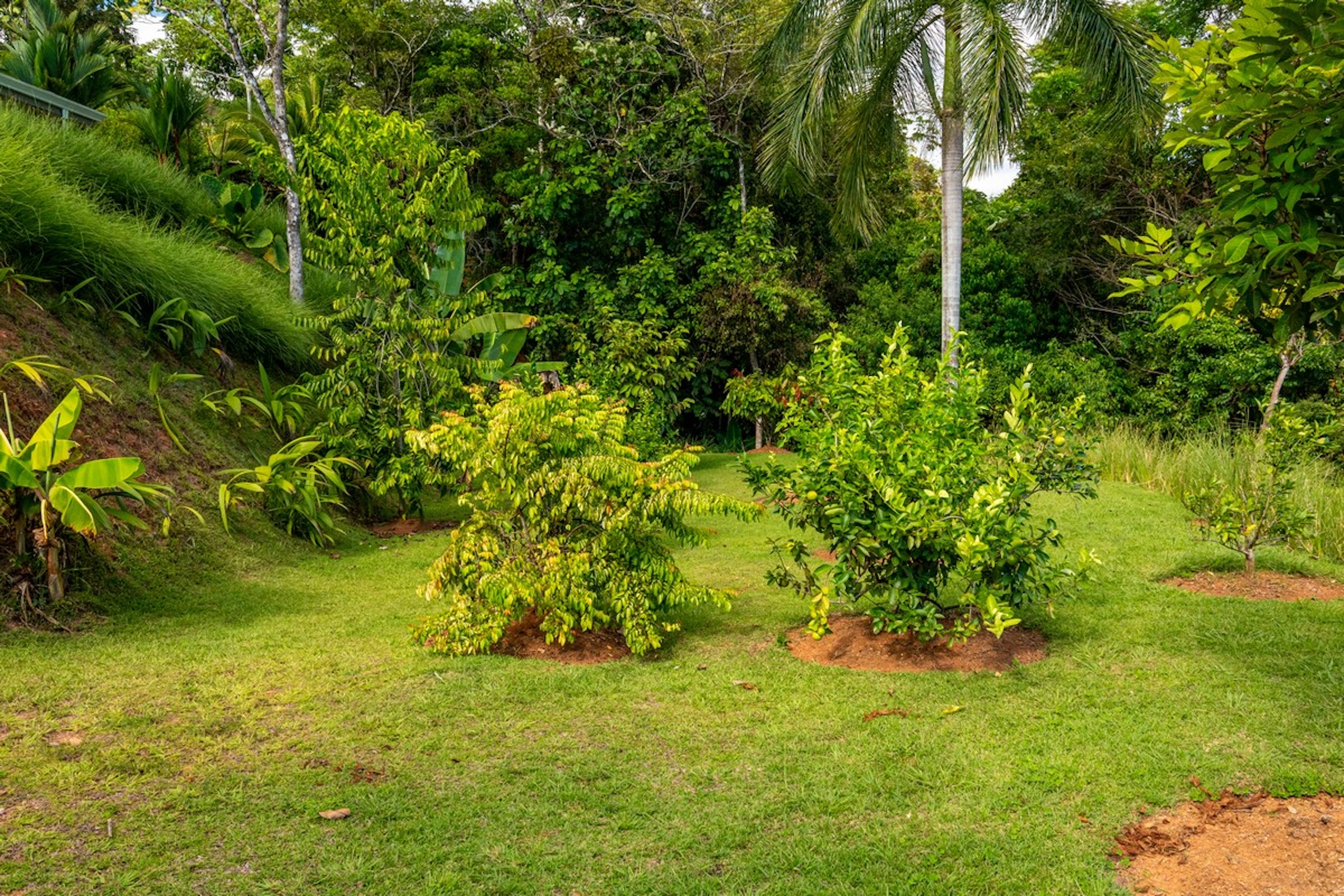 Located within a private, gated community, this stunning luxury residence offers the perfect blend of privacy, nature, and sophistication. Set on an expansive lot surrounded by tropical gardens, the property enjoys panoramic ocean and valley views, along with mature fruit trees, productive coconut palms, and a creek with a small waterfall at the lower end—creating a truly serene and unique environment.