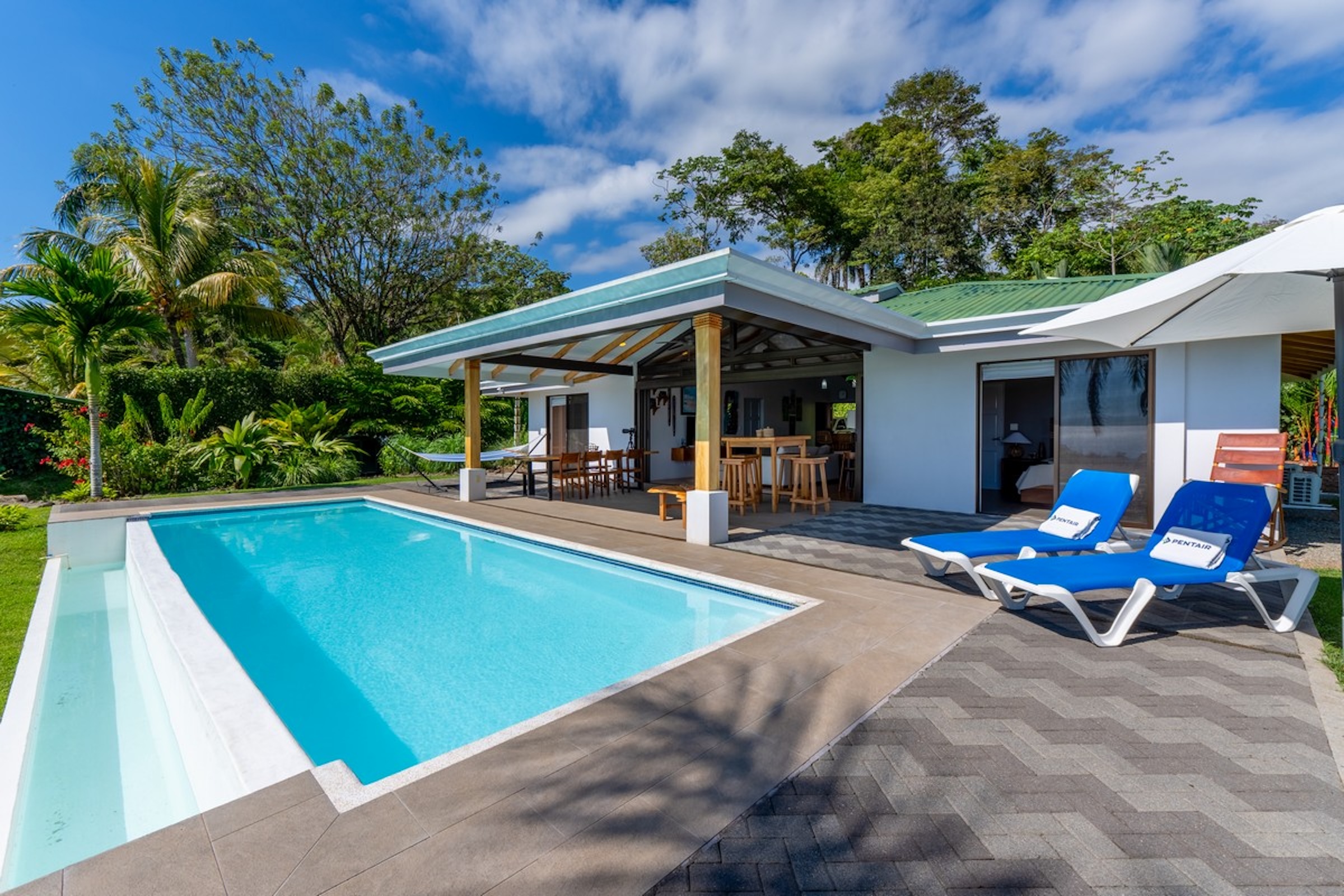 La casa fue diseñada pensando en la comodidad y la autosuficiencia. Cuenta con concesión de agua legal, un sistema avanzado de purificación por luz UV y energía solar, asegurando eficiencia y tranquilidad. La amplia piscina con vista al mar, junto con la ducha exterior y los hermosos jardines, ofrece el escenario ideal para relajarse y disfrutar del clima tropical.