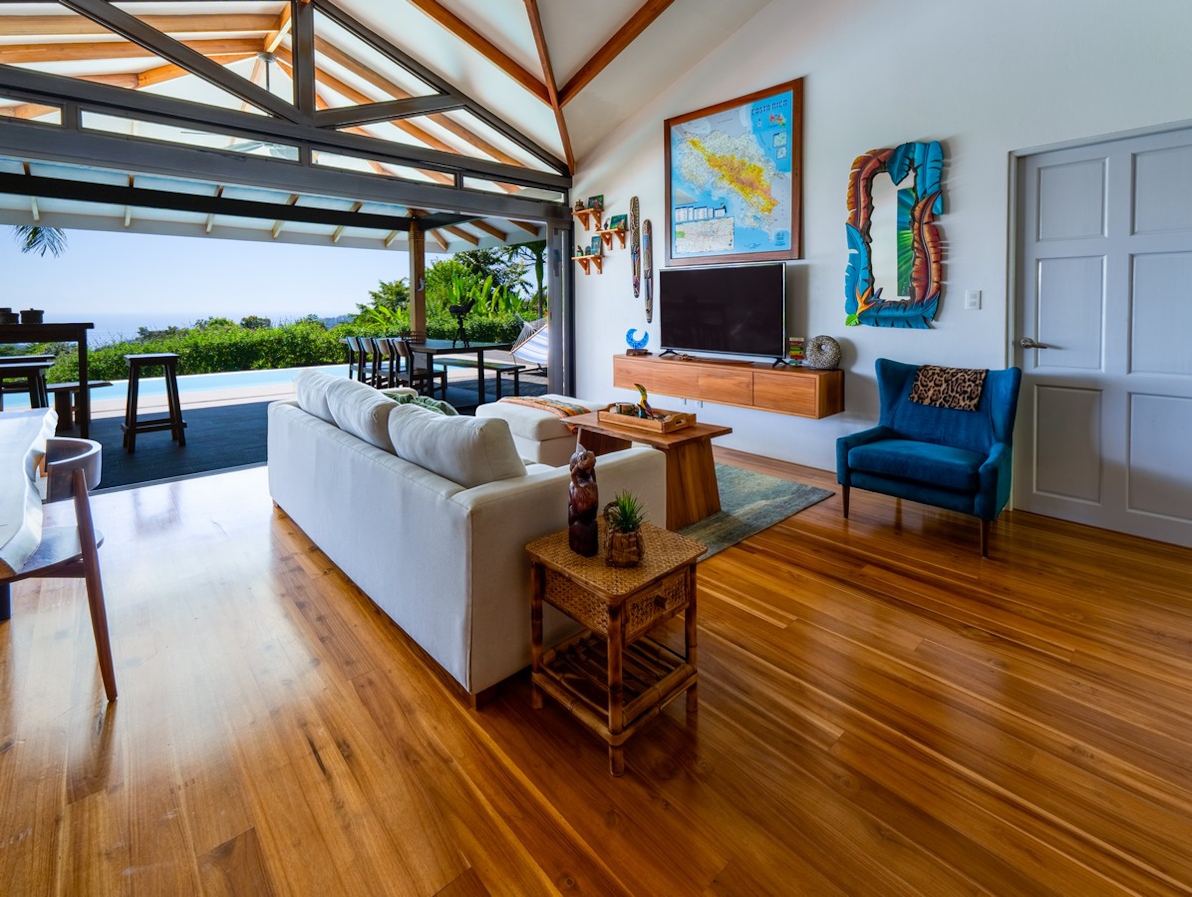 Totalmente amueblada y lista para habitar, la residencia presenta un interior diseñado profesionalmente, con cálidos pisos de teca y baldosas, además de elegantes mesas de madera de Guanacaste hechas a medida, que aportan un toque natural y sofisticado. Cada detalle ha sido cuidadosamente seleccionado, reflejando la calidad y el esmero con los que fue construida.