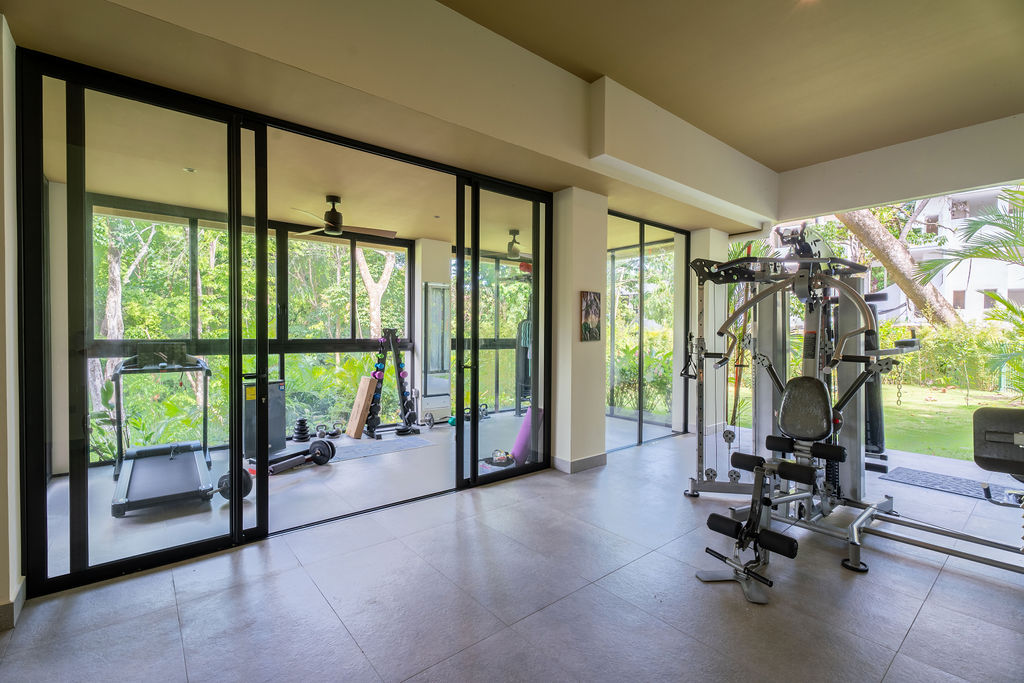 Para quienes valoran un estilo de vida activo, la propiedad incluye un gimnasio interior/exterior privado, perfectamente equipado y con vistas a la naturaleza circundante.