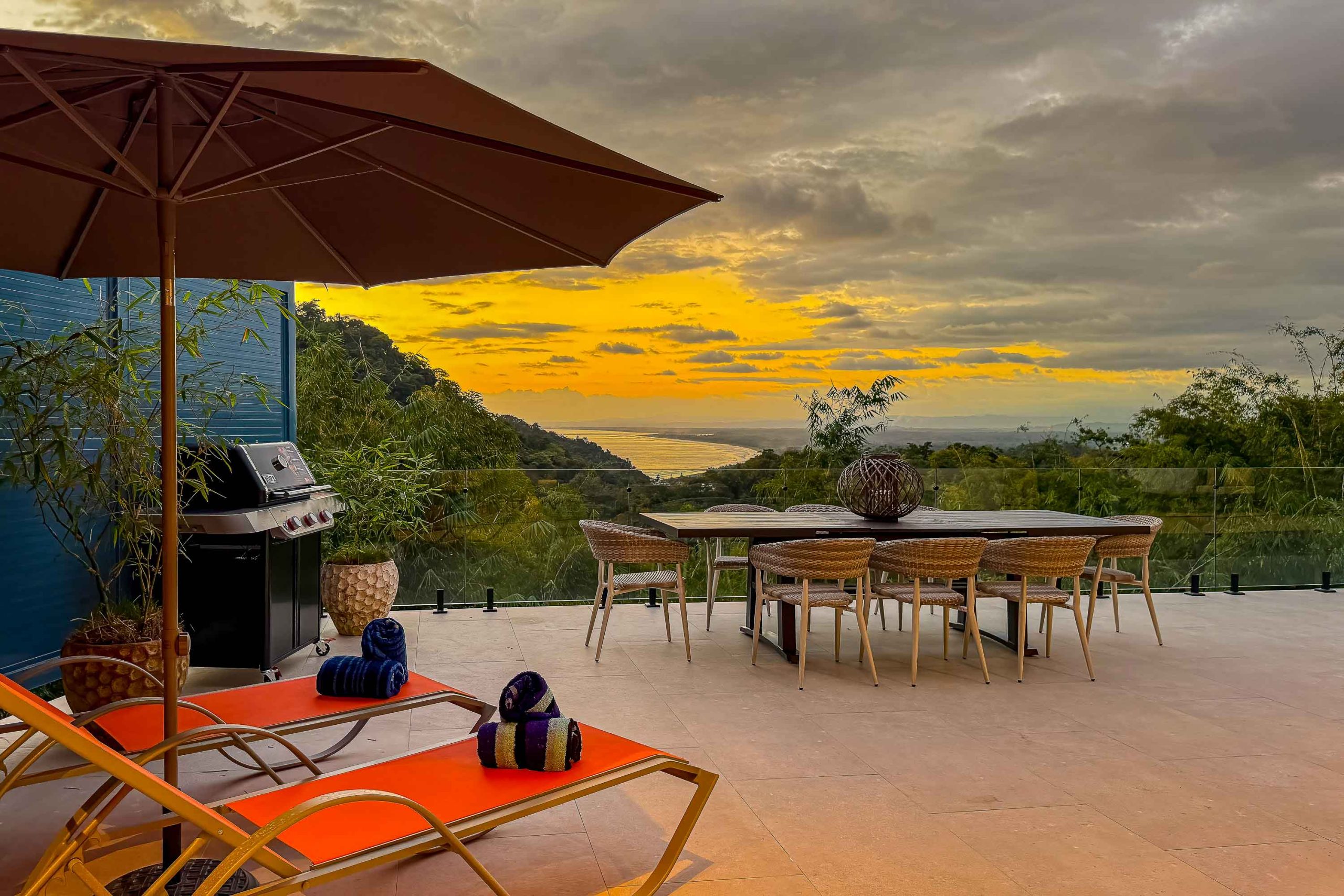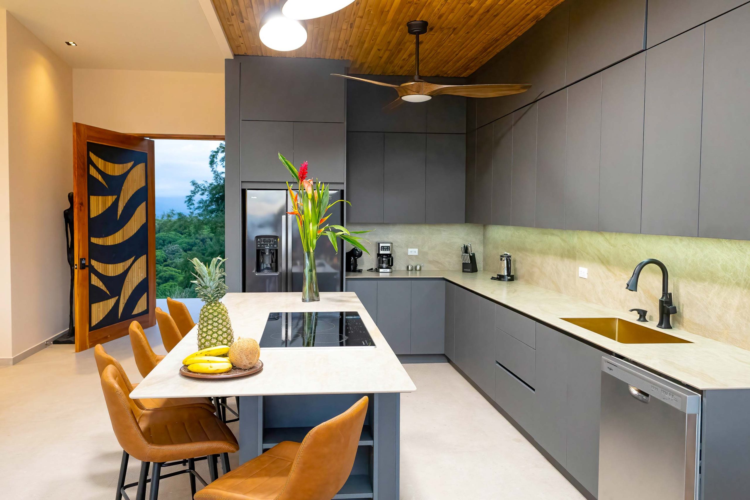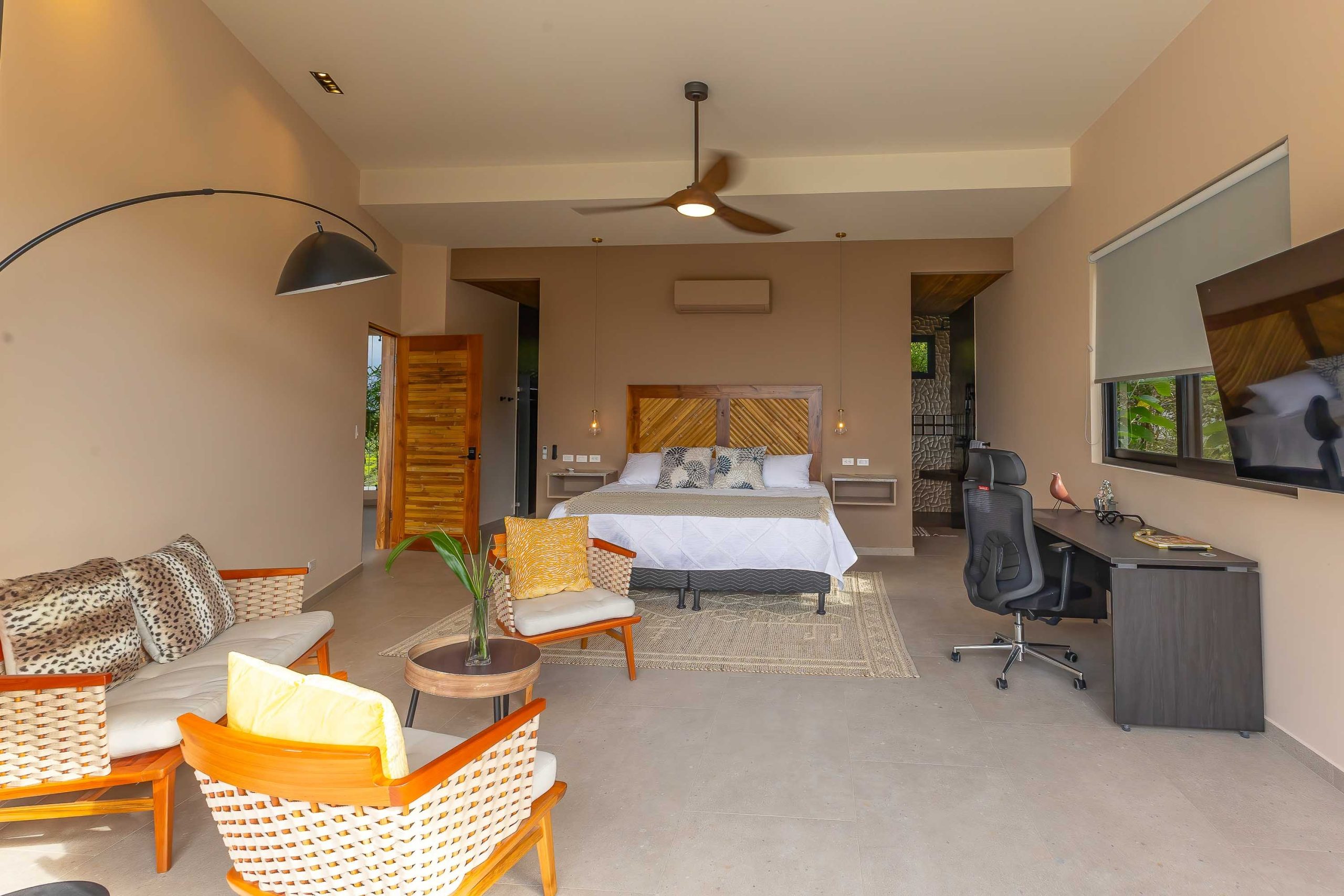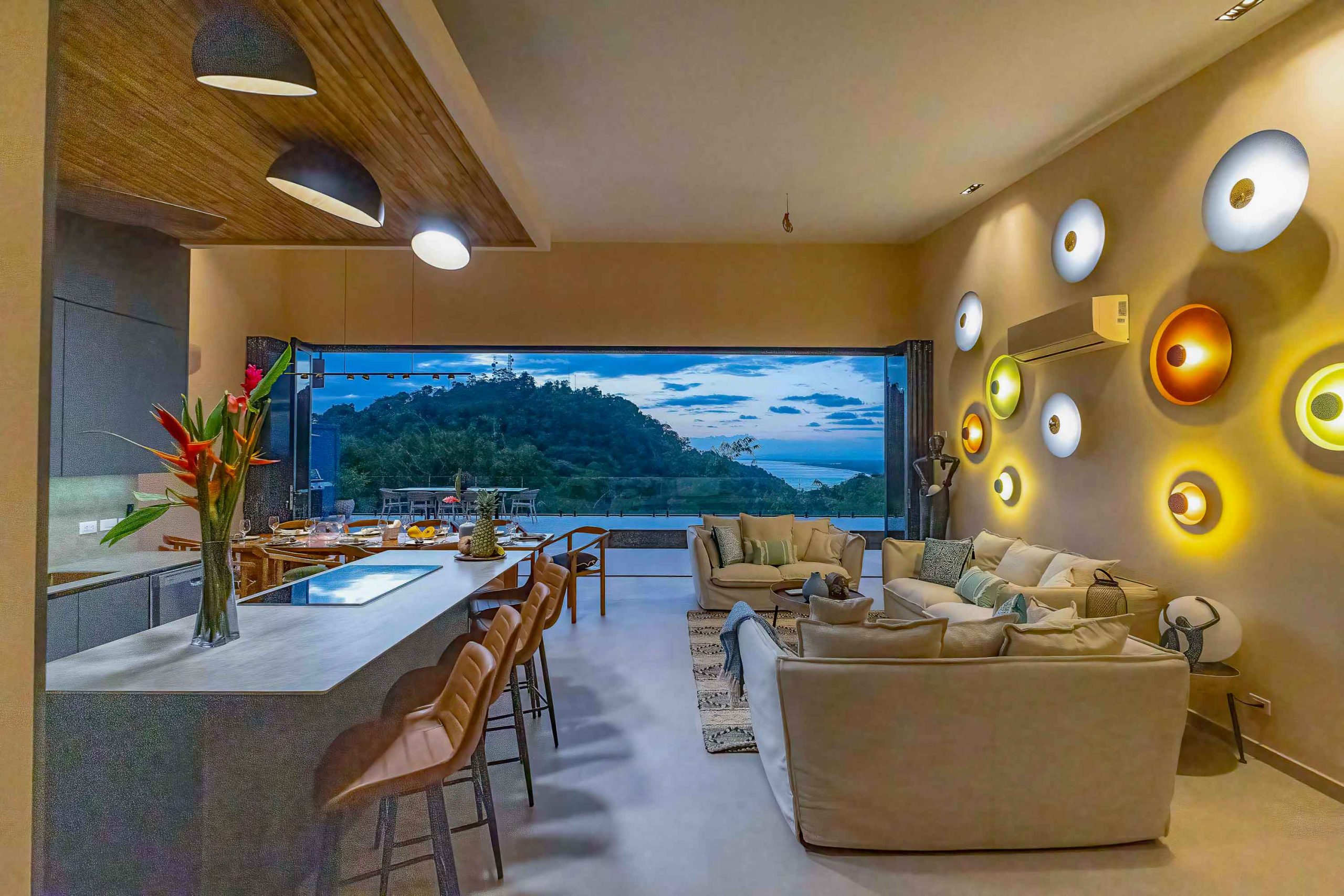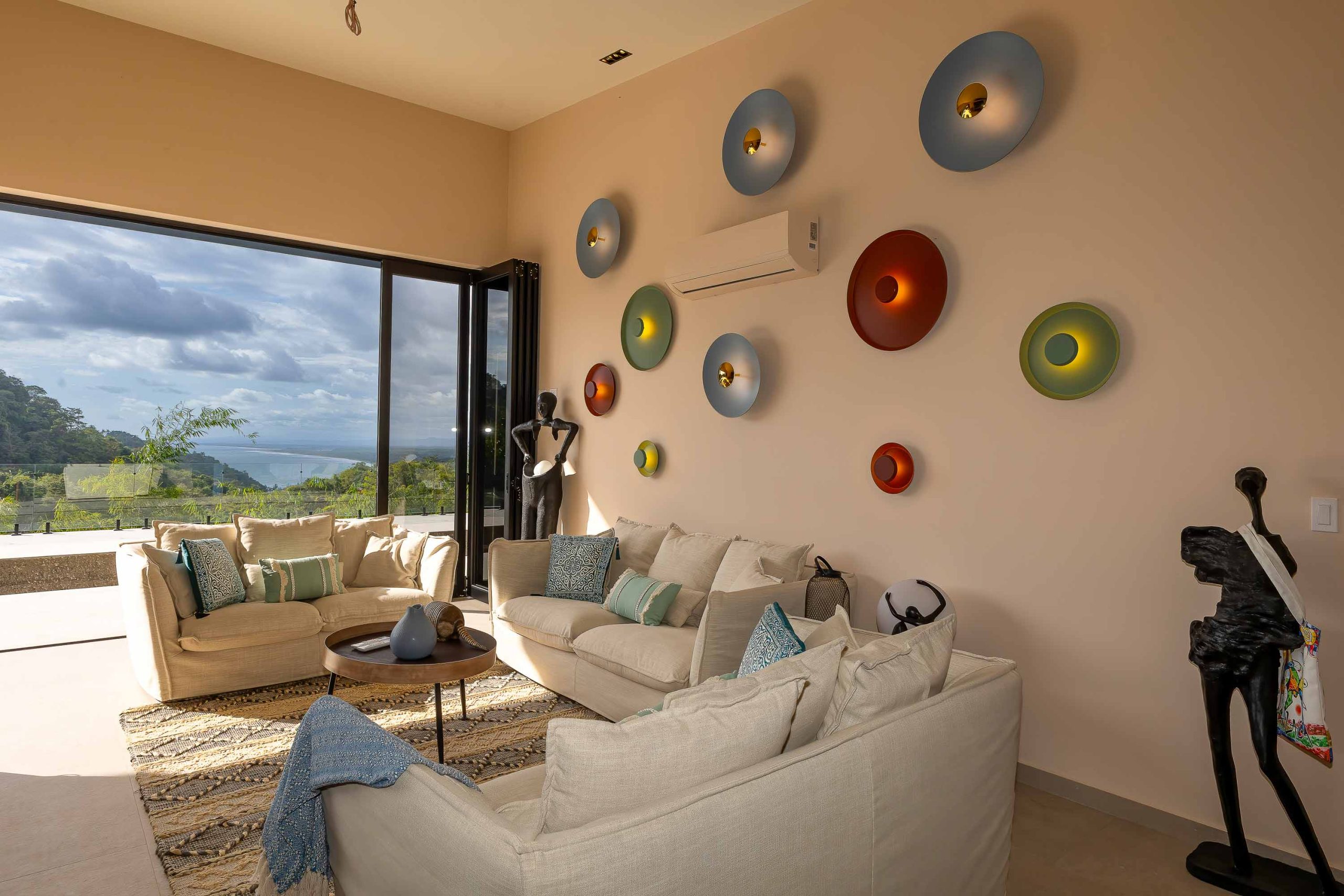 Al ingresar, las vistas se roban toda la atención: el Océano Pacífico se despliega ante sus ojos, con su costa salvaje extendiéndose hasta donde alcanza la vista, mientras que al fondo las montañas verdes se elevan y se funden con el cielo, iluminadas cada mañana por tonos dorados. Aquí, la naturaleza es la protagonista absoluta, convirtiendo a esta propiedad en una de las joyas inmobiliarias más deseadas de Manuel Antonio.