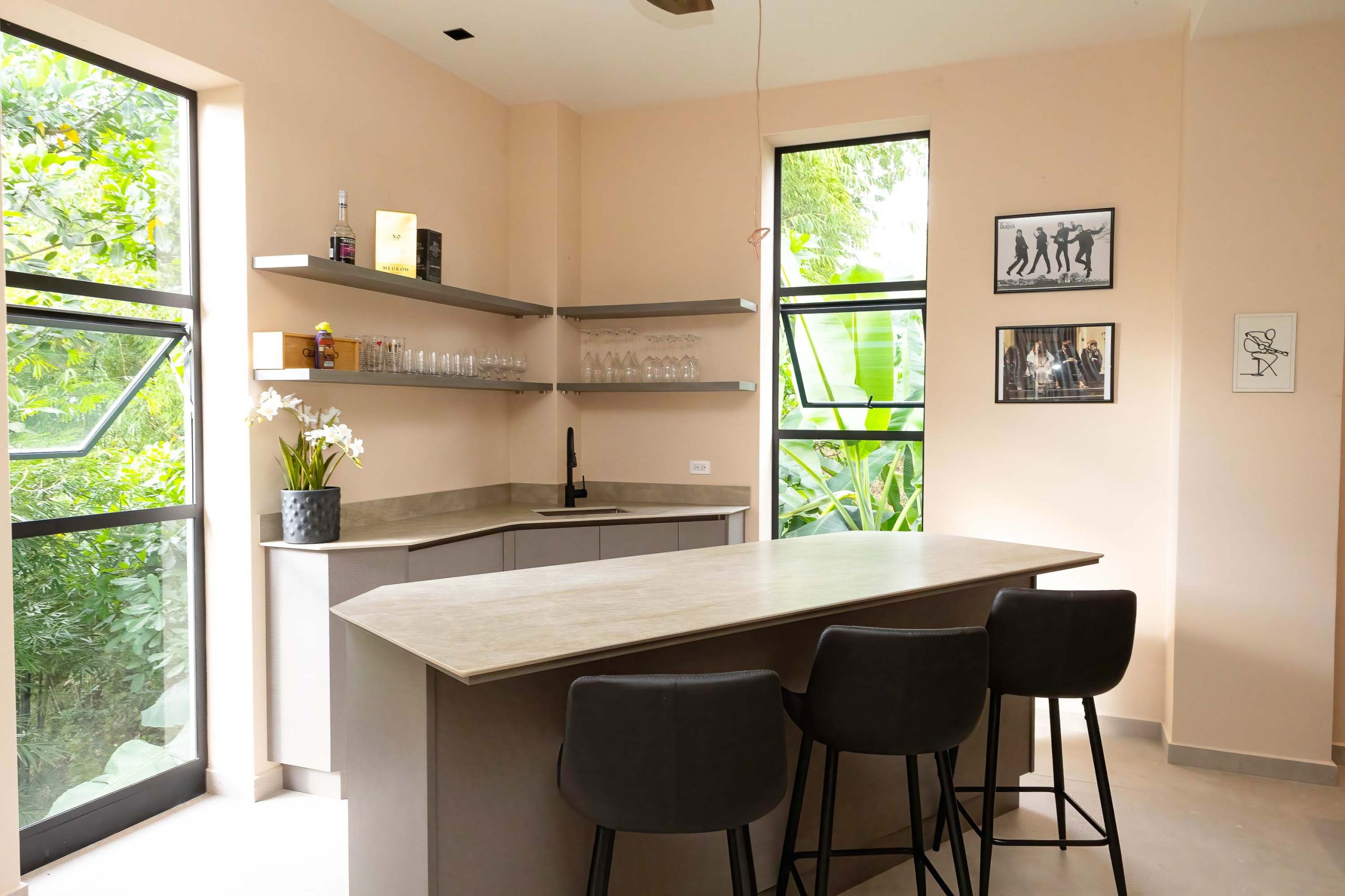 Pensada para disfrutar tanto de grandes reuniones como de momentos de absoluta intimidad, “Buddha Belly” ofrece cinco elegantes habitaciones con baño privado, concebidas como espacios de descanso y privacidad total. Las áreas sociales, amplias y luminosas, combinan un diseño contemporáneo con elementos naturales que se integran de forma orgánica al entorno. La cocina gourmet, equipada con electrodomésticos de alta gama, invita a crear y compartir experiencias culinarias memorables.