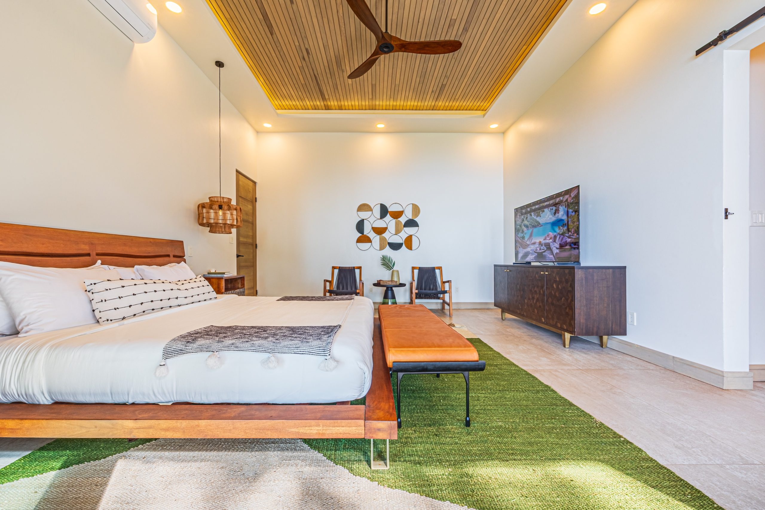 Los principales espacios de la residencia han sido estratégicamente orientados hacia el mar, ofreciendo una de las vistas más impactantes de Costa Rica: la icónica formación de la Cola de Ballena, el rompimiento de las olas sobre las rocas y atardeceres inolvidables que transforman cada tarde en una experiencia única.