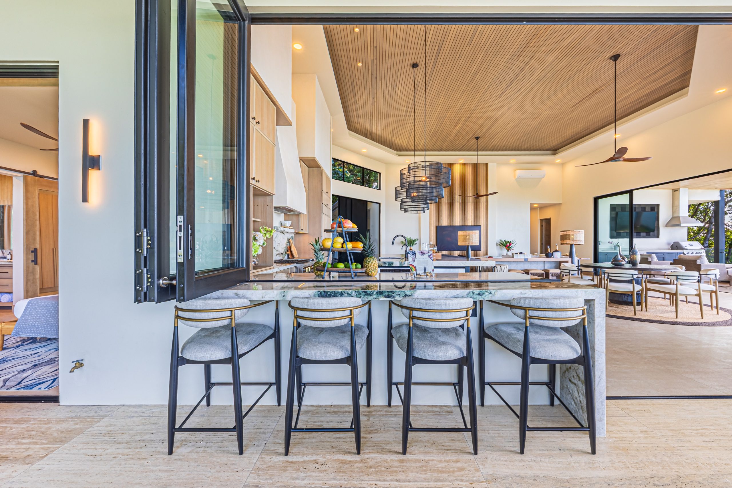 La sala principal, la cocina gourmet y la piscina infinita se integran visualmente con el horizonte, creando un ambiente sofisticado donde el océano se convierte en el protagonista del día a día.