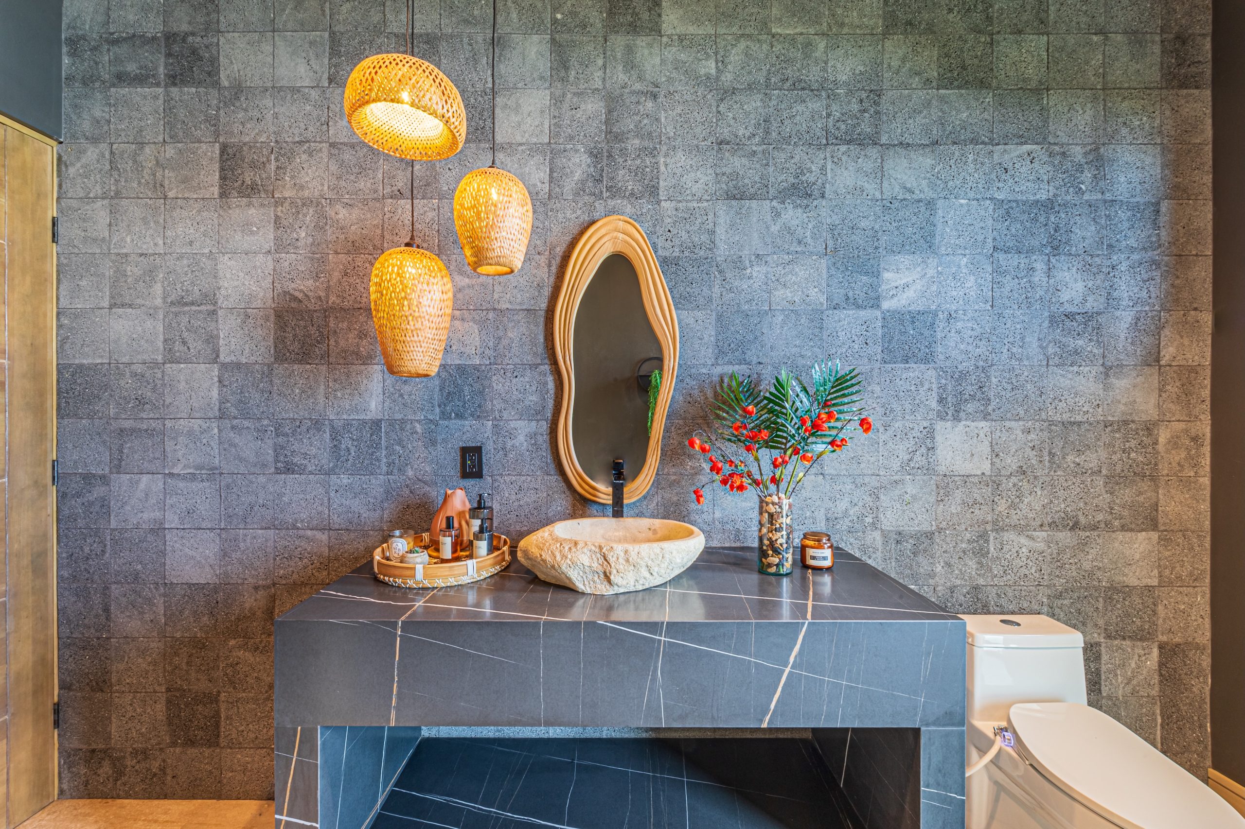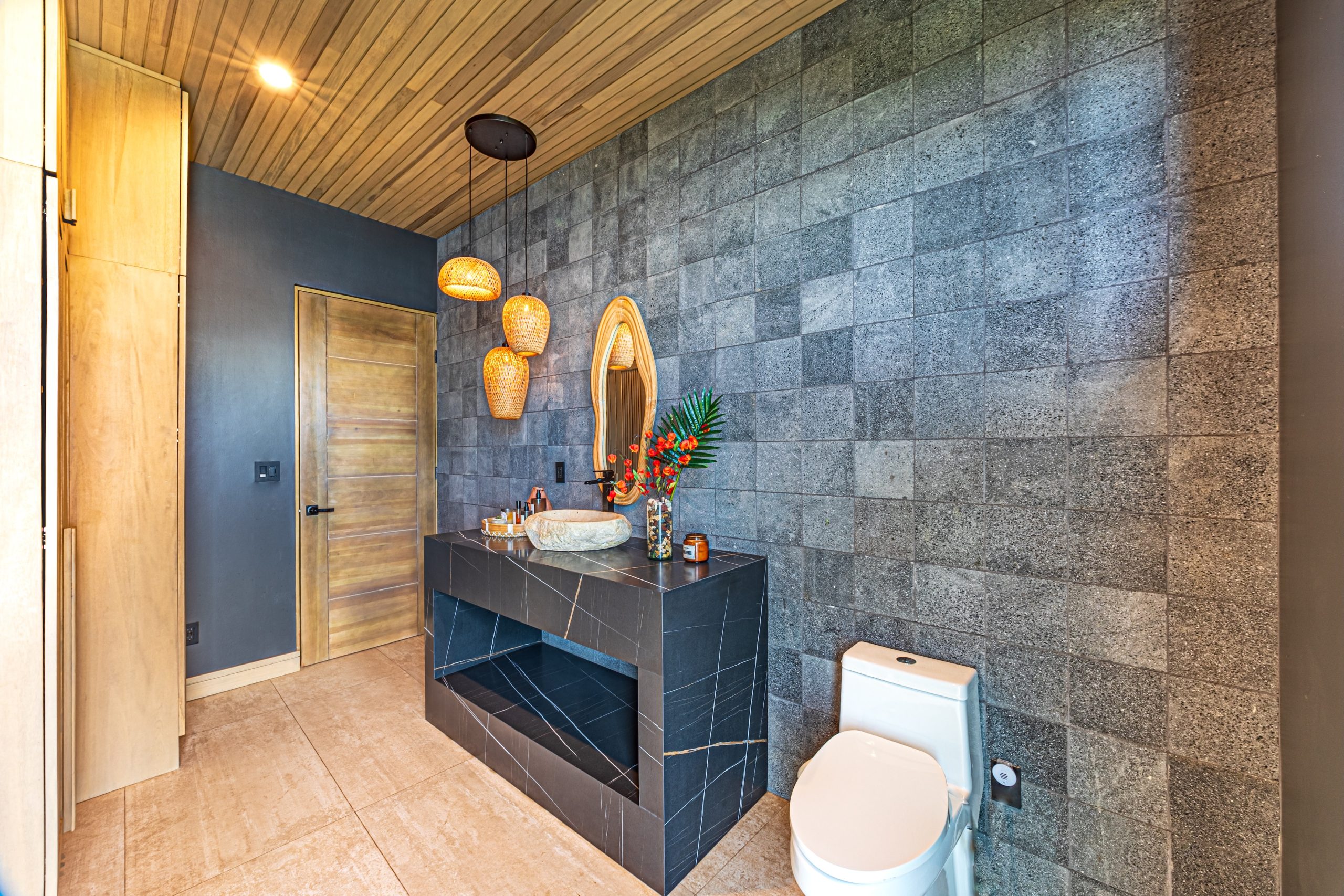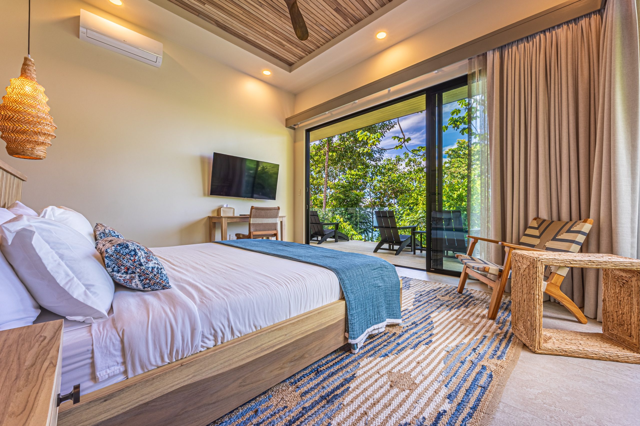 The main spaces of the residence have been strategically oriented towards the sea, offering one of the most impressive views in Costa Rica: the iconic Whale’s Tail formation, the breaking of the waves on the rocks and unforgettable sunsets that transform each evening into a unique experience.