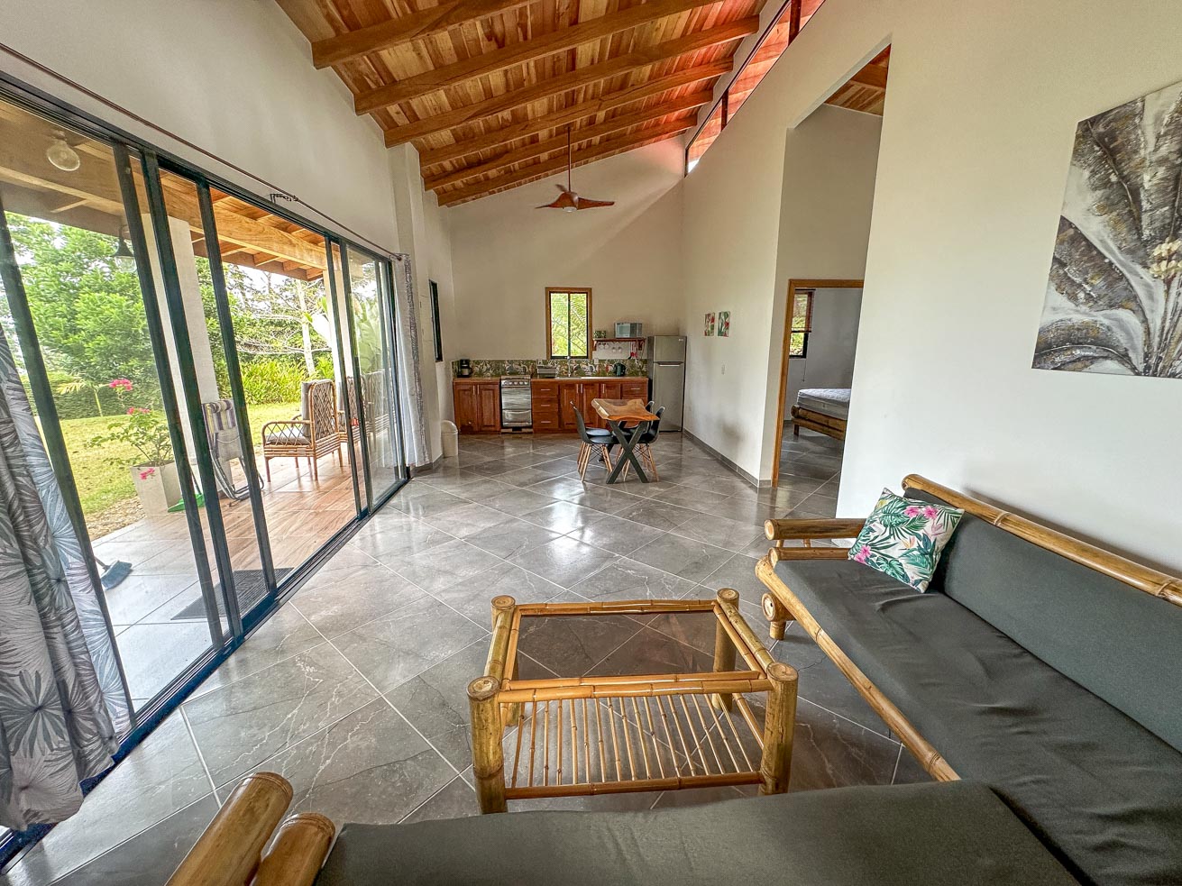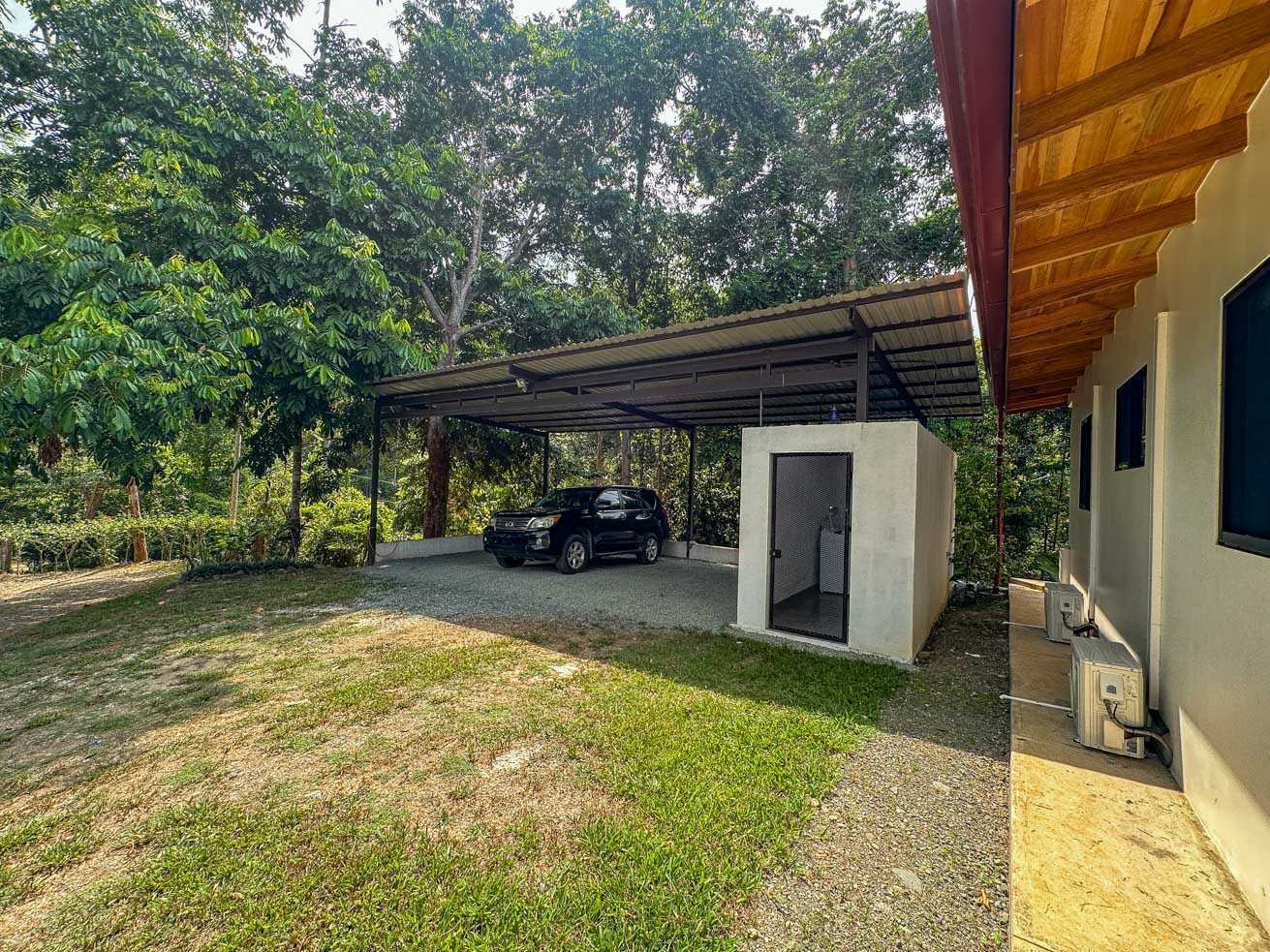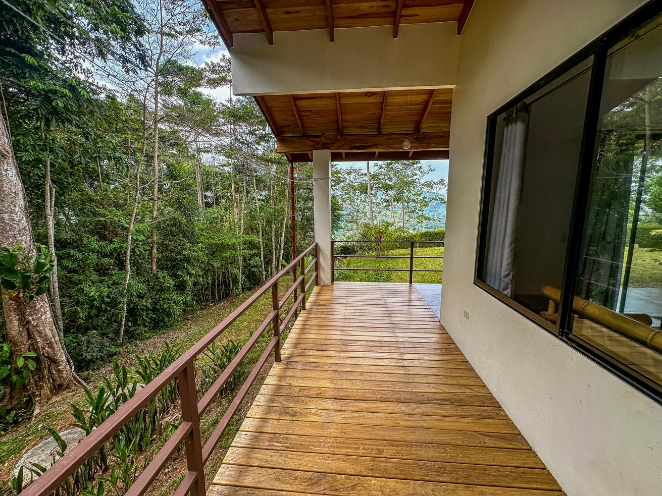 The property sits atop a gentle hill, with both residences elevated and overlooking the valley and the majestic mountains that stretch out before. Rainforest surrounds the property on all sides, transforming daily life into a unique natural experience: monkeys, toucans, sloths, tree frogs, blue morpho butterflies, and a wide variety of other wildlife will be part of your everyday surroundings. Cool mountain breezes are a constant companion, providing a pleasant climate year-round. Access is convenient and secure thanks to its proximity to the main road connecting Dominical with San Isidro, complemented by a carport and garage that ensure dry and comfortable travel at any time of year.