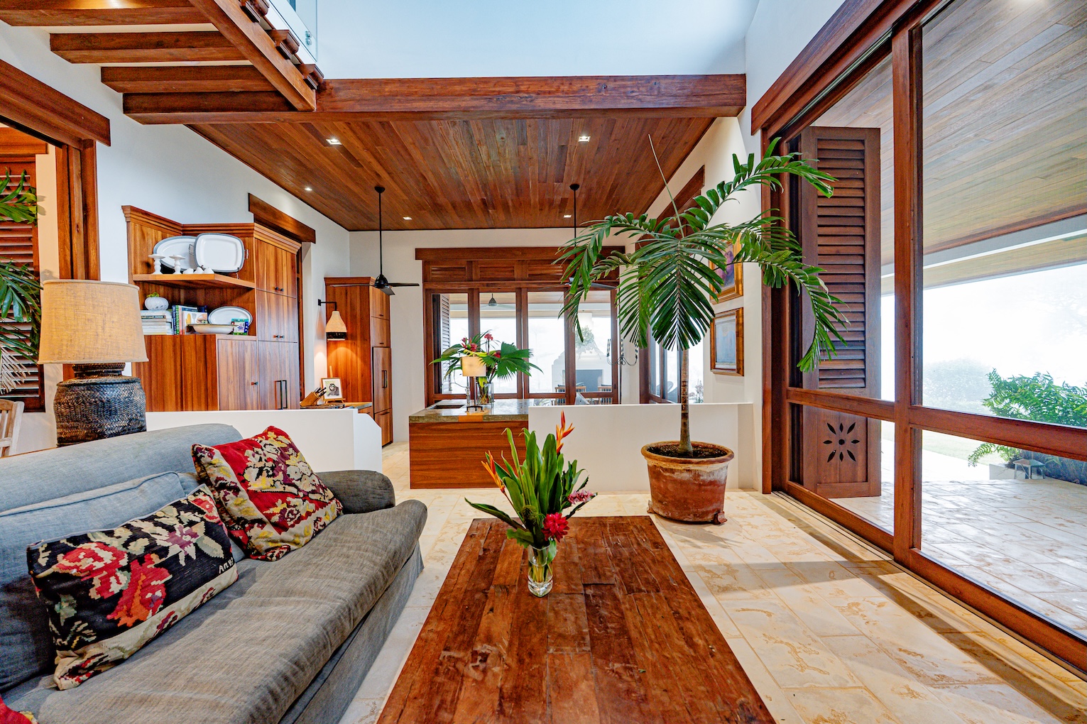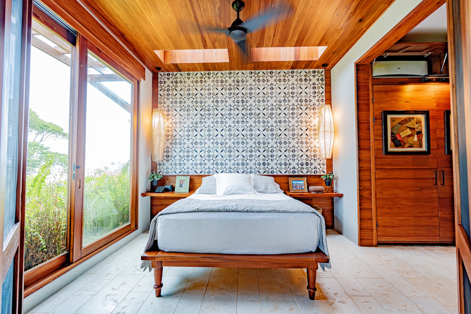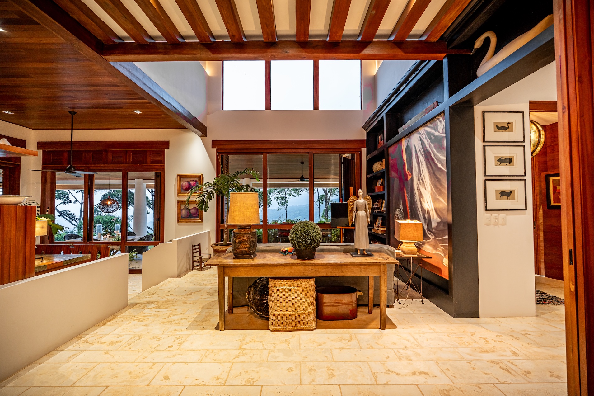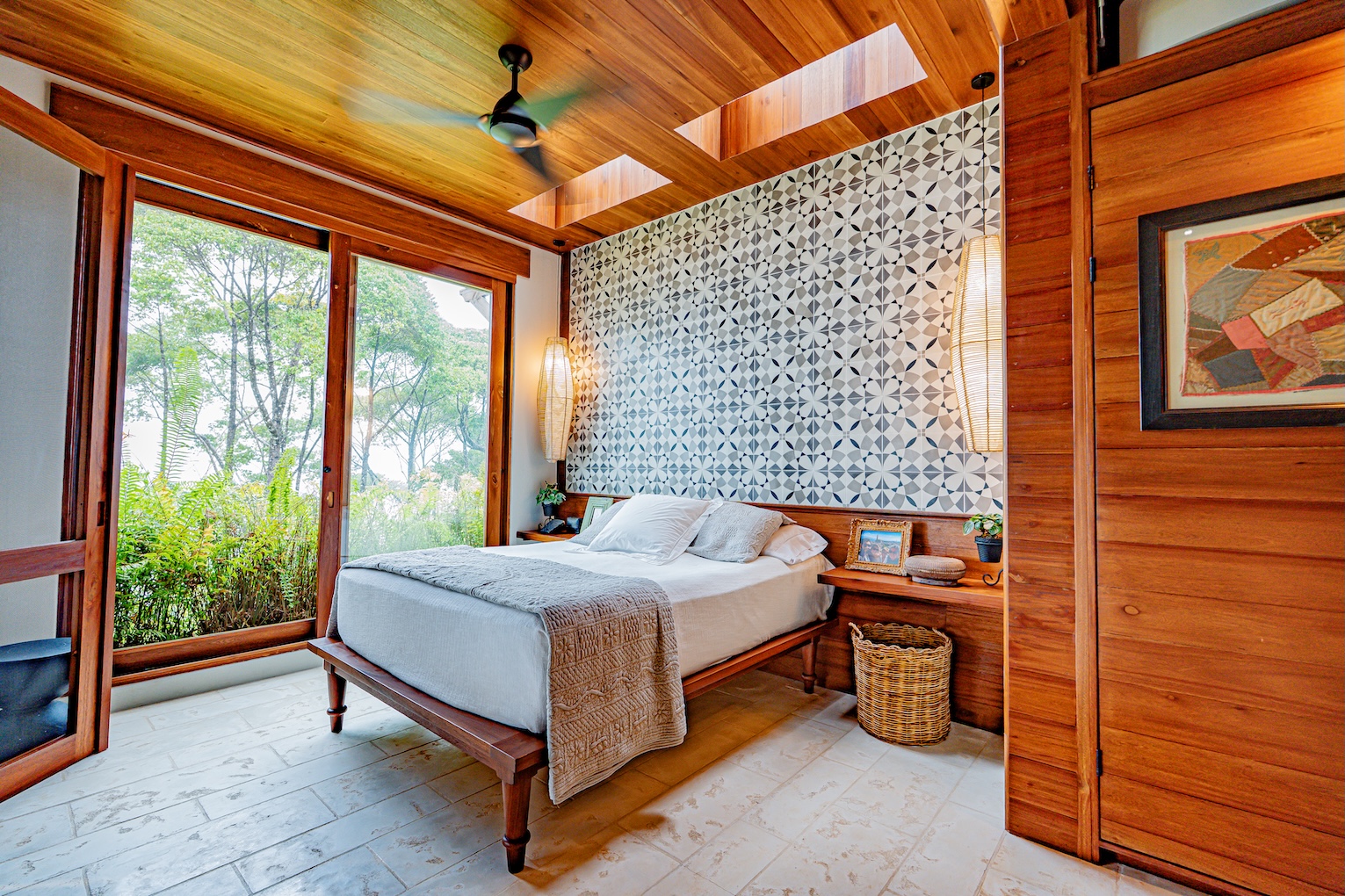 La propiedad cuenta con 2 amplios dormitorios, 2 baños completos, una oficina privada y muebles hechos a medida, todo pensado para brindar confort y funcionalidad en armonía con el clima local. Desde el segundo nivel y la azotea, se disfrutan espectaculares vistas al mar, mientras que las majestuosas cordilleras de Chirripó y Talamanca ofrecen un paisaje imponente desde los patios y áreas sociales.