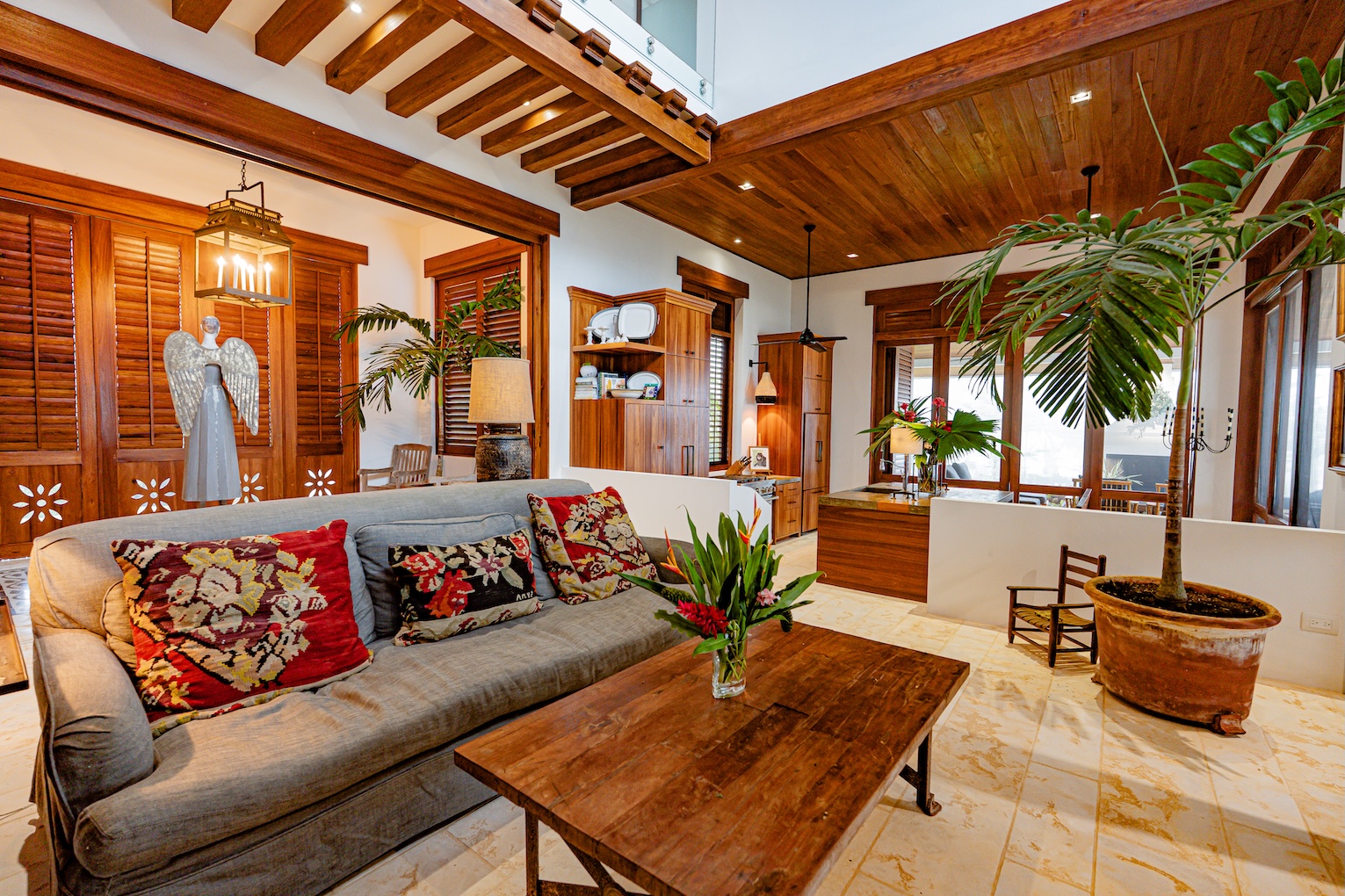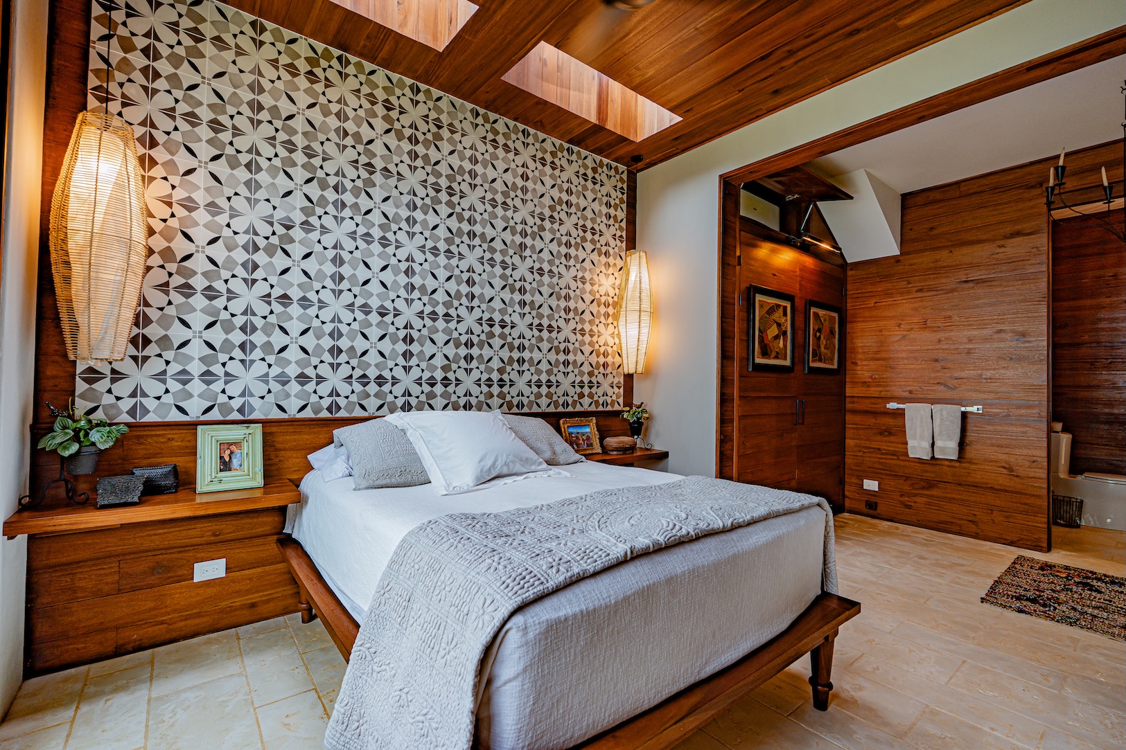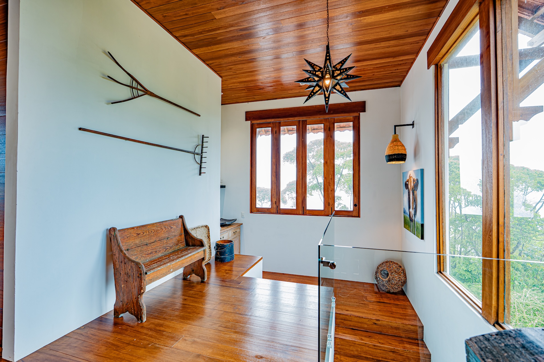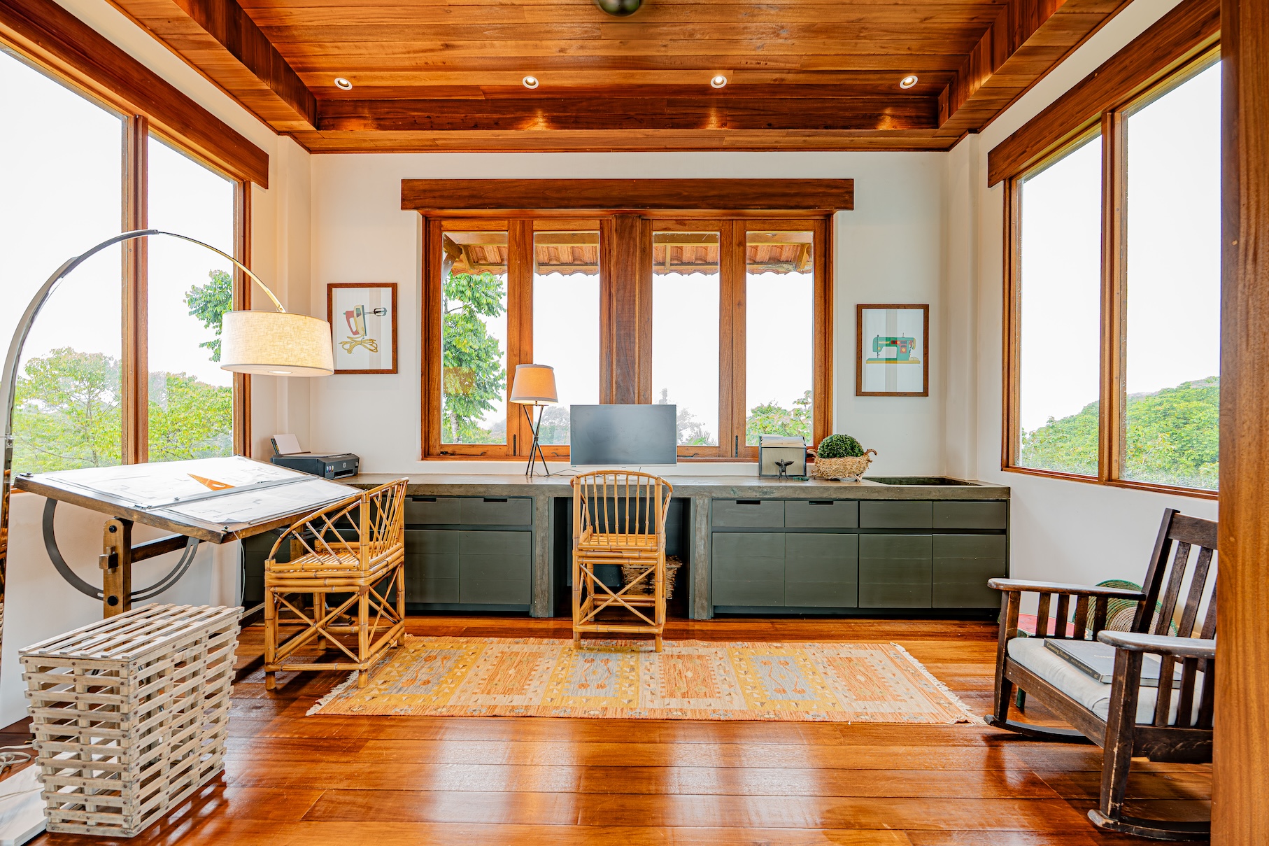La propiedad cuenta con 2 amplios dormitorios, 2 baños completos, una oficina privada y muebles hechos a medida, todo pensado para brindar confort y funcionalidad en armonía con el clima local. Desde el segundo nivel y la azotea, se disfrutan espectaculares vistas al mar, mientras que las majestuosas cordilleras de Chirripó y Talamanca ofrecen un paisaje imponente desde los patios y áreas sociales.