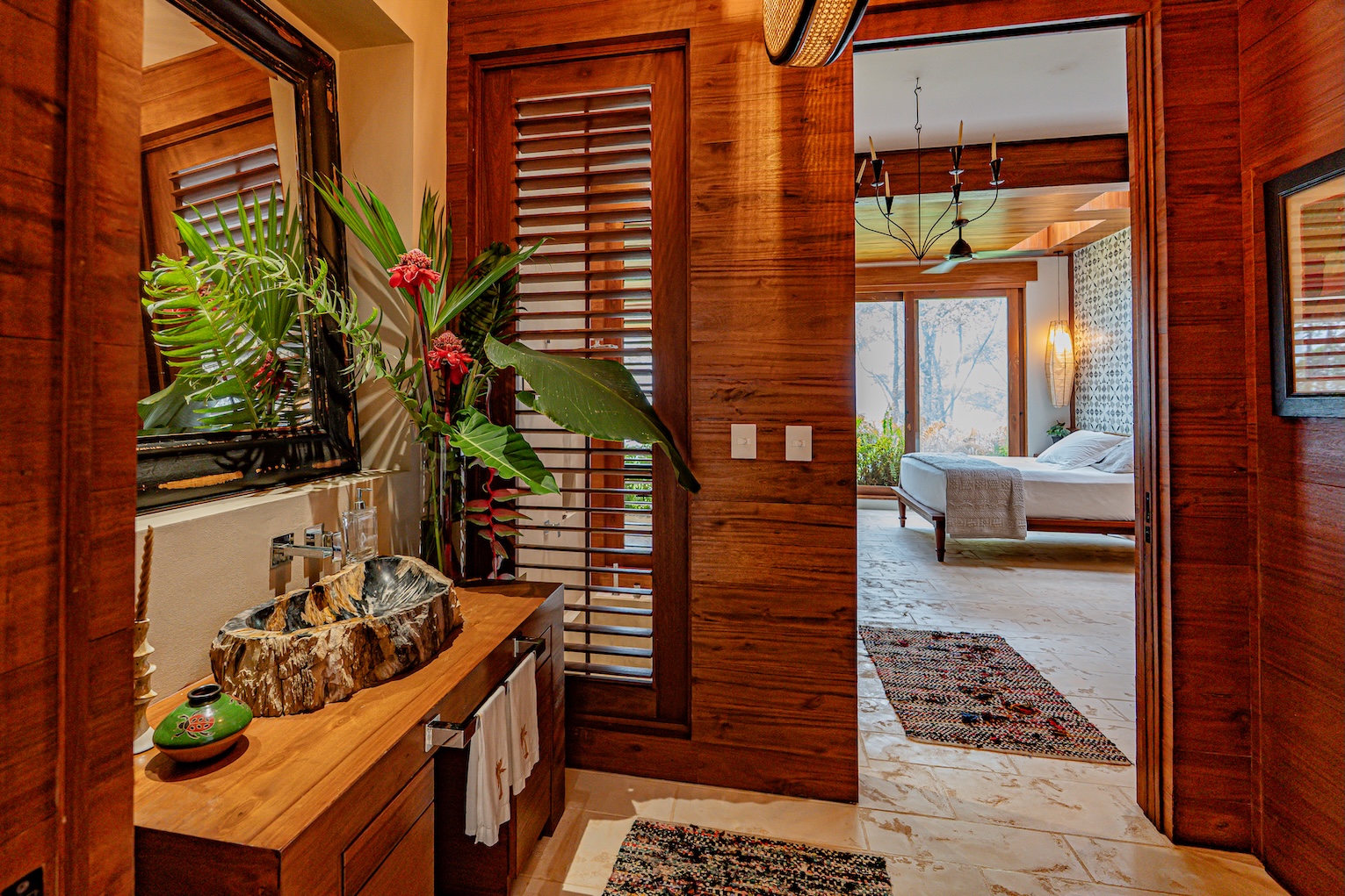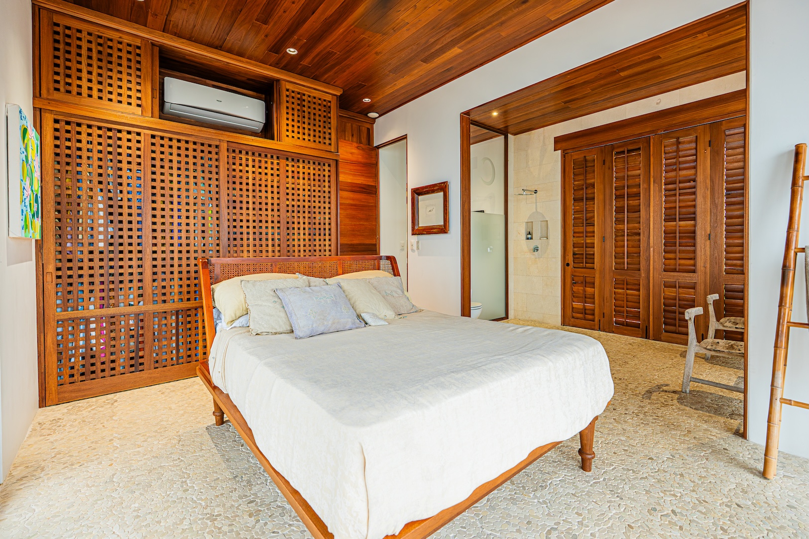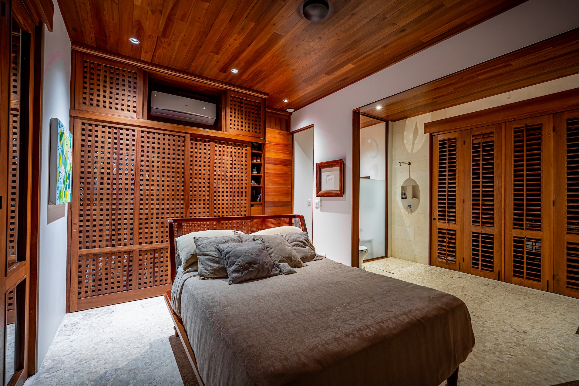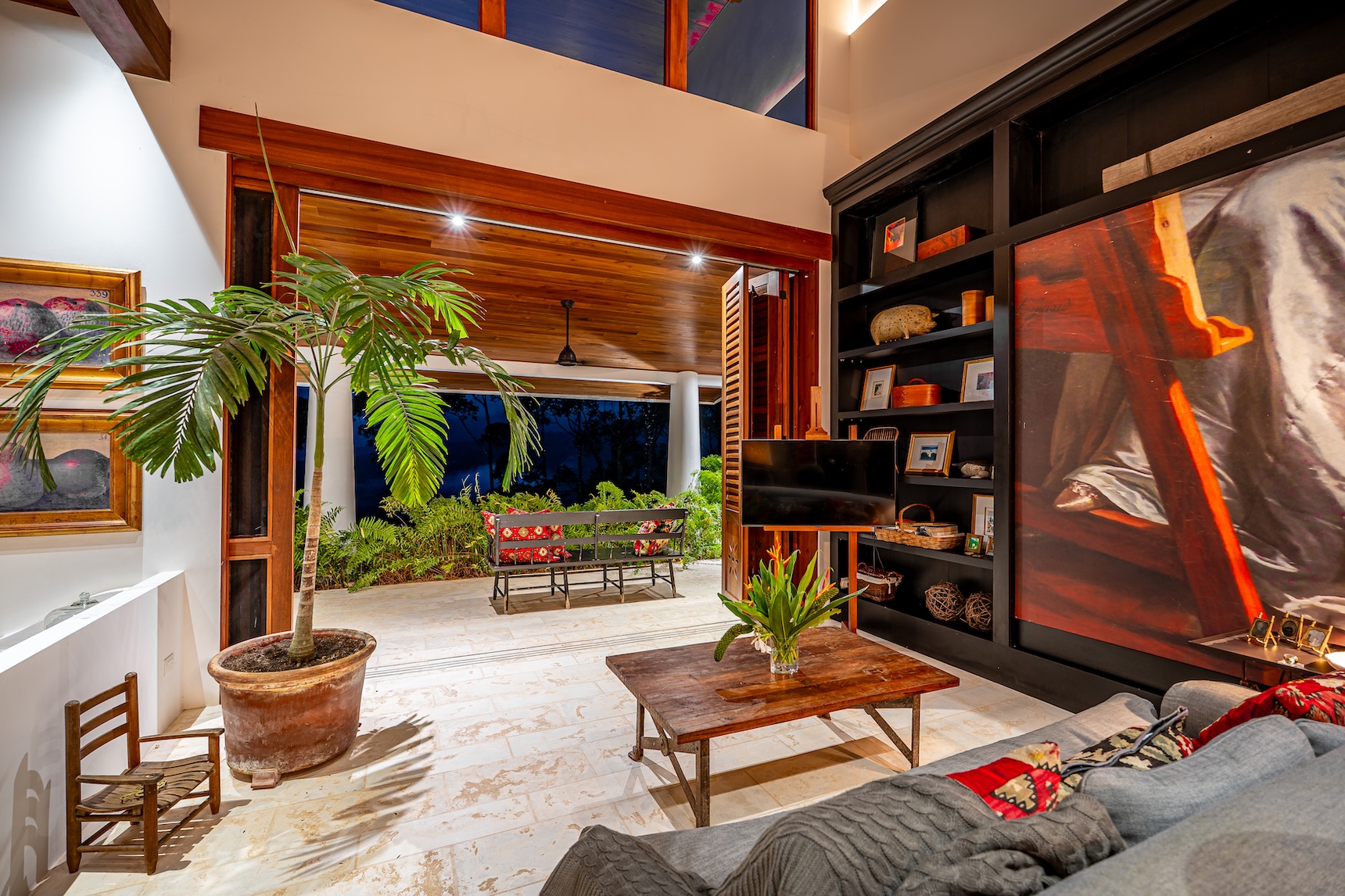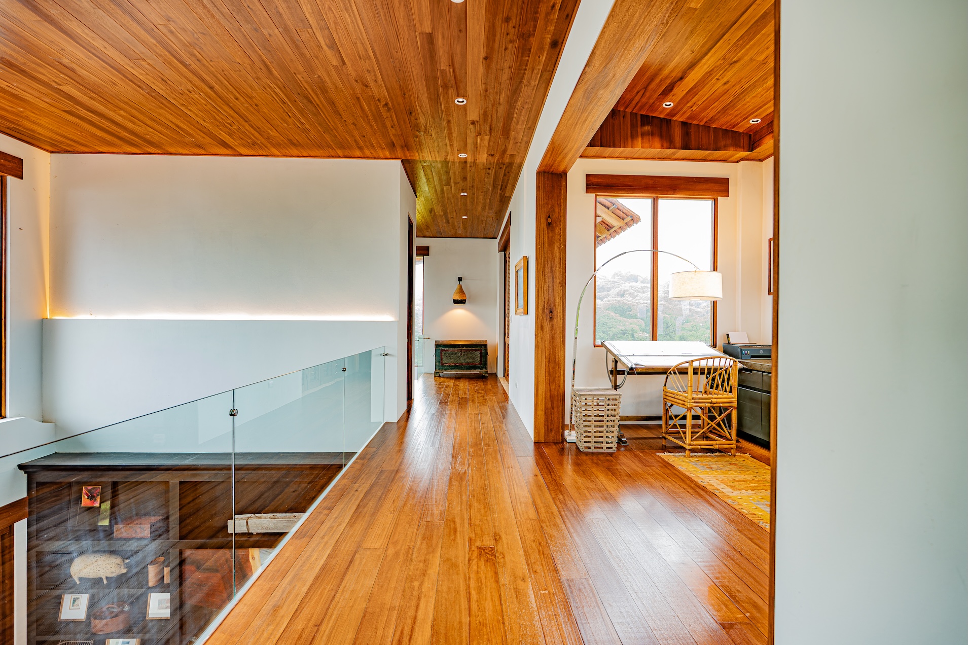 La propiedad cuenta con 2 amplios dormitorios, 2 baños completos, una oficina privada y muebles hechos a medida, todo pensado para brindar confort y funcionalidad en armonía con el clima local. Desde el segundo nivel y la azotea, se disfrutan espectaculares vistas al mar, mientras que las majestuosas cordilleras de Chirripó y Talamanca ofrecen un paisaje imponente desde los patios y áreas sociales.