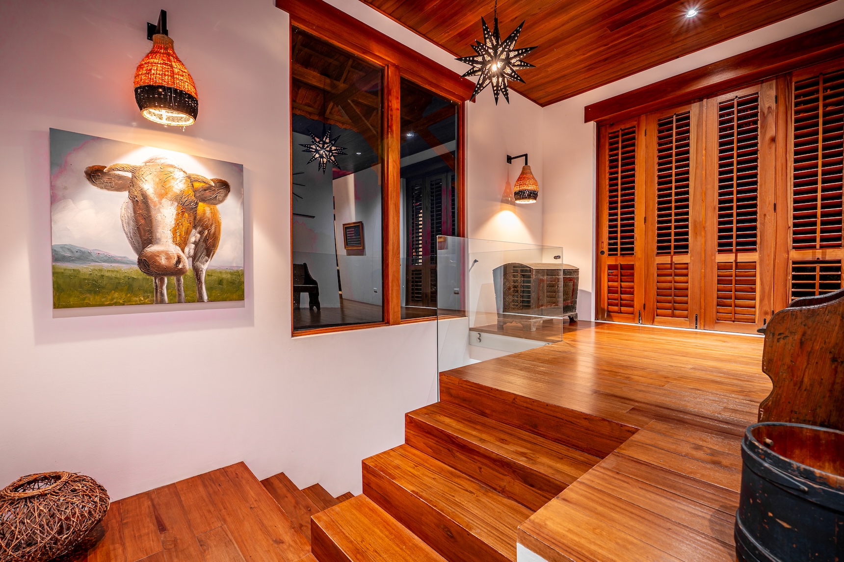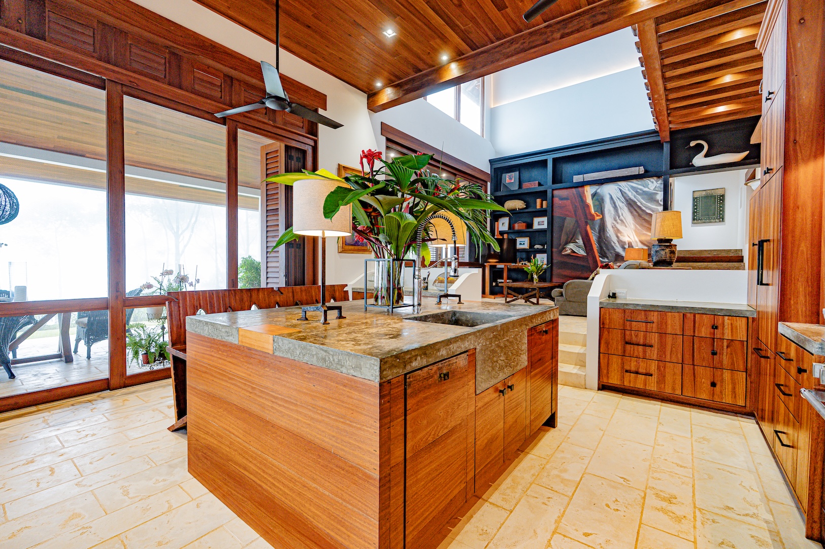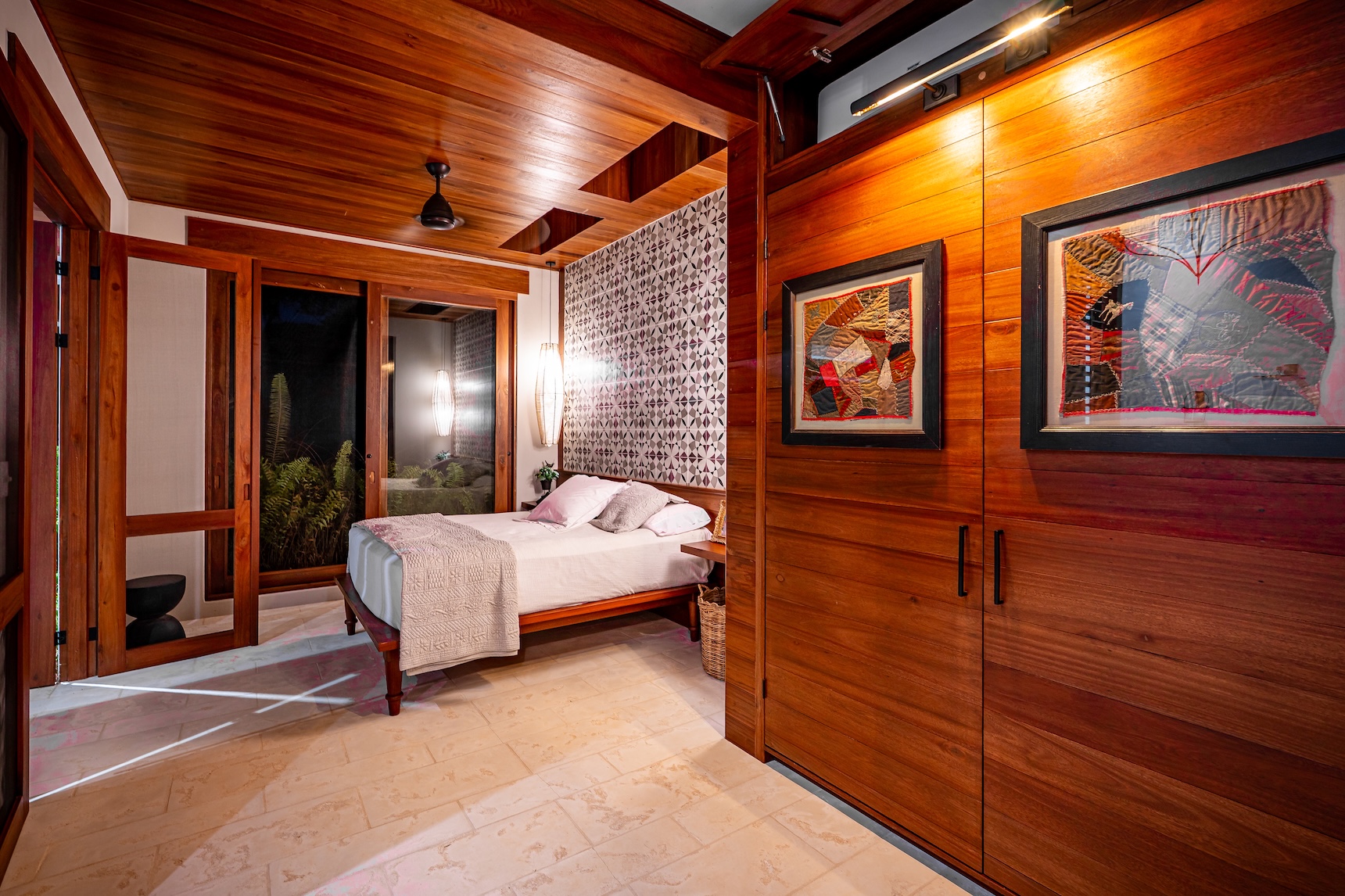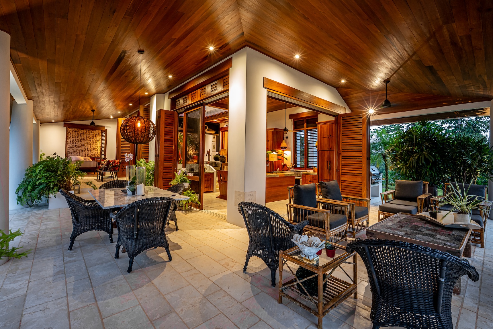 La propiedad cuenta con 2 amplios dormitorios, 2 baños completos, una oficina privada y muebles hechos a medida, todo pensado para brindar confort y funcionalidad en armonía con el clima local. Desde el segundo nivel y la azotea, se disfrutan espectaculares vistas al mar, mientras que las majestuosas cordilleras de Chirripó y Talamanca ofrecen un paisaje imponente desde los patios y áreas sociales.