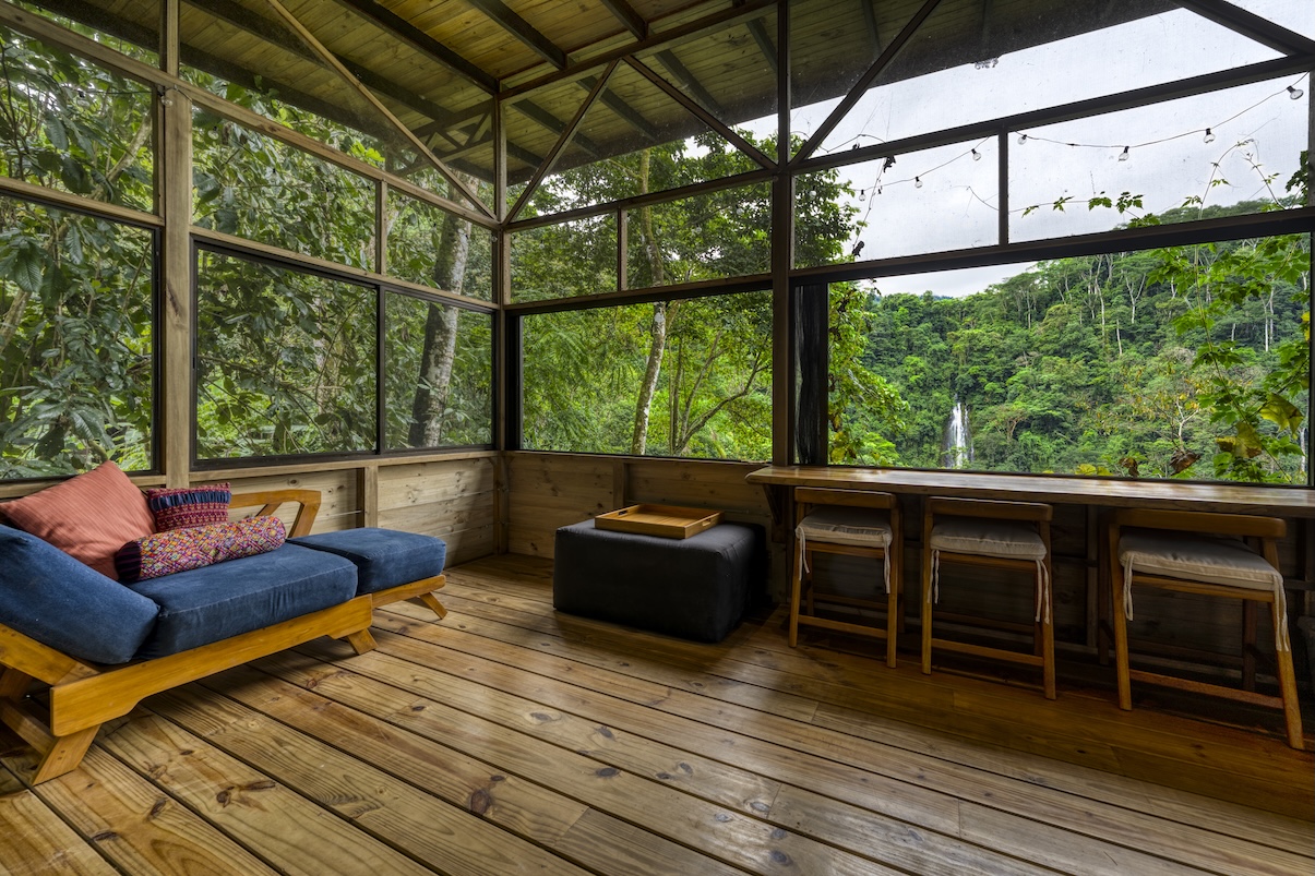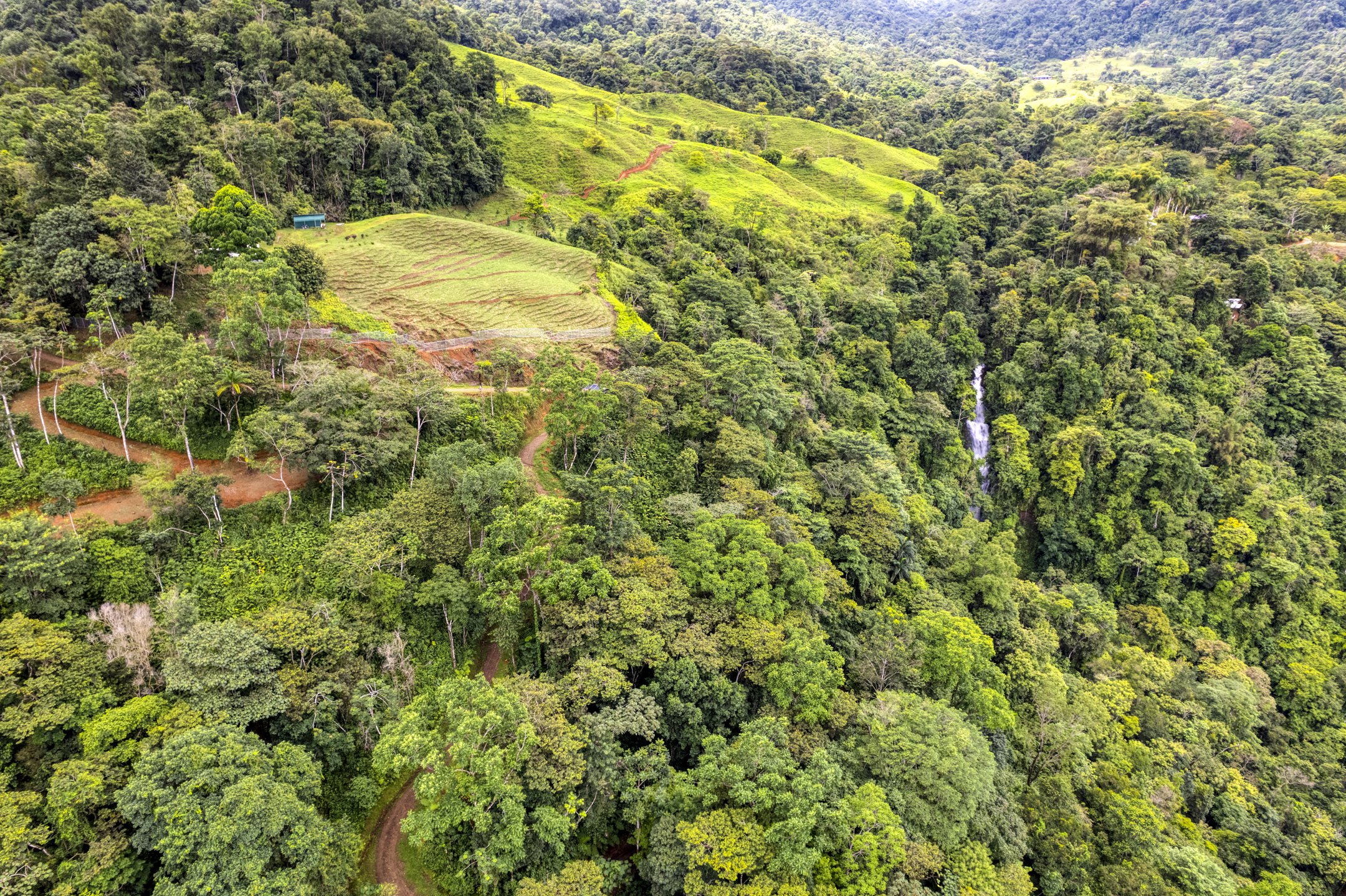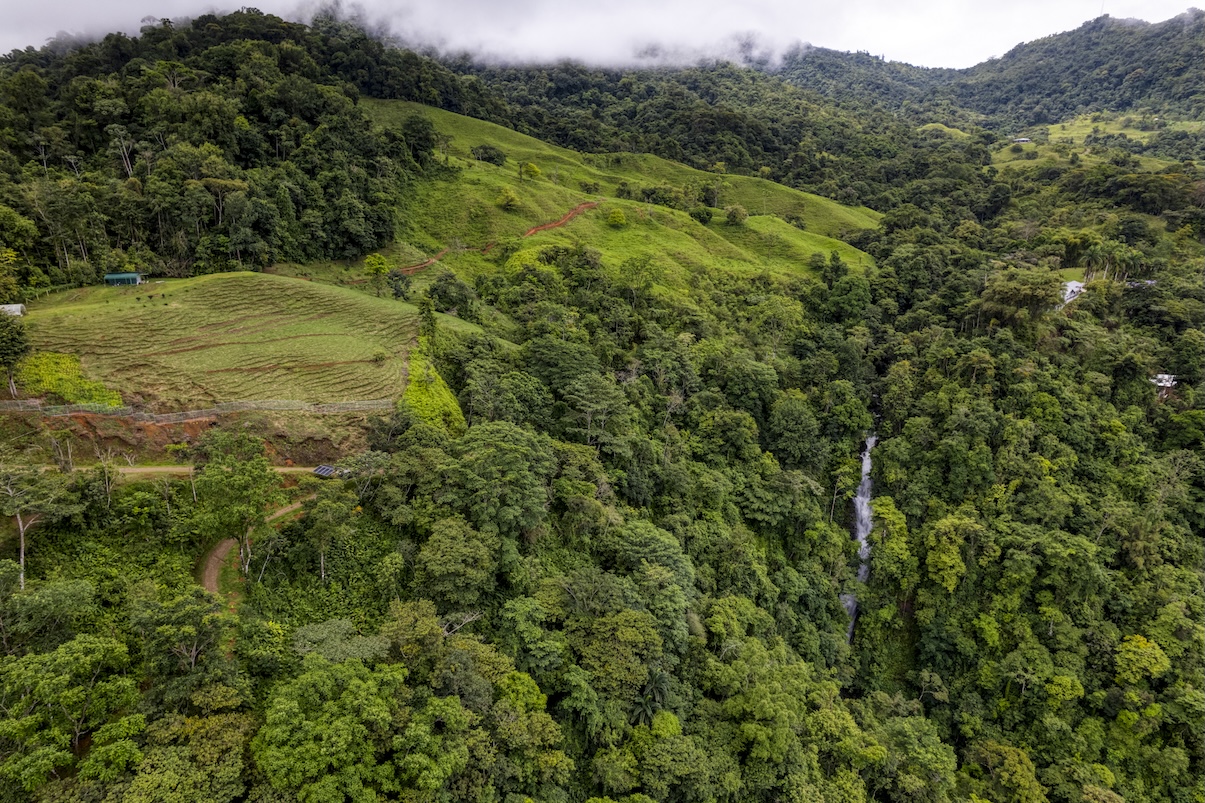 Tres espectaculares cascadas fluyen durante todo el año, aportando no solo belleza escénica, sino también un recurso hídrico invaluable. En el corazón de la propiedad se alza una cabaña artesanal de madera, perfectamente situada con vista directa a la cascada principal. Es el lugar ideal para disfrutar de las mañanas envueltas en niebla y el constante murmullo del agua cayendo, en completa armonía con la naturaleza.