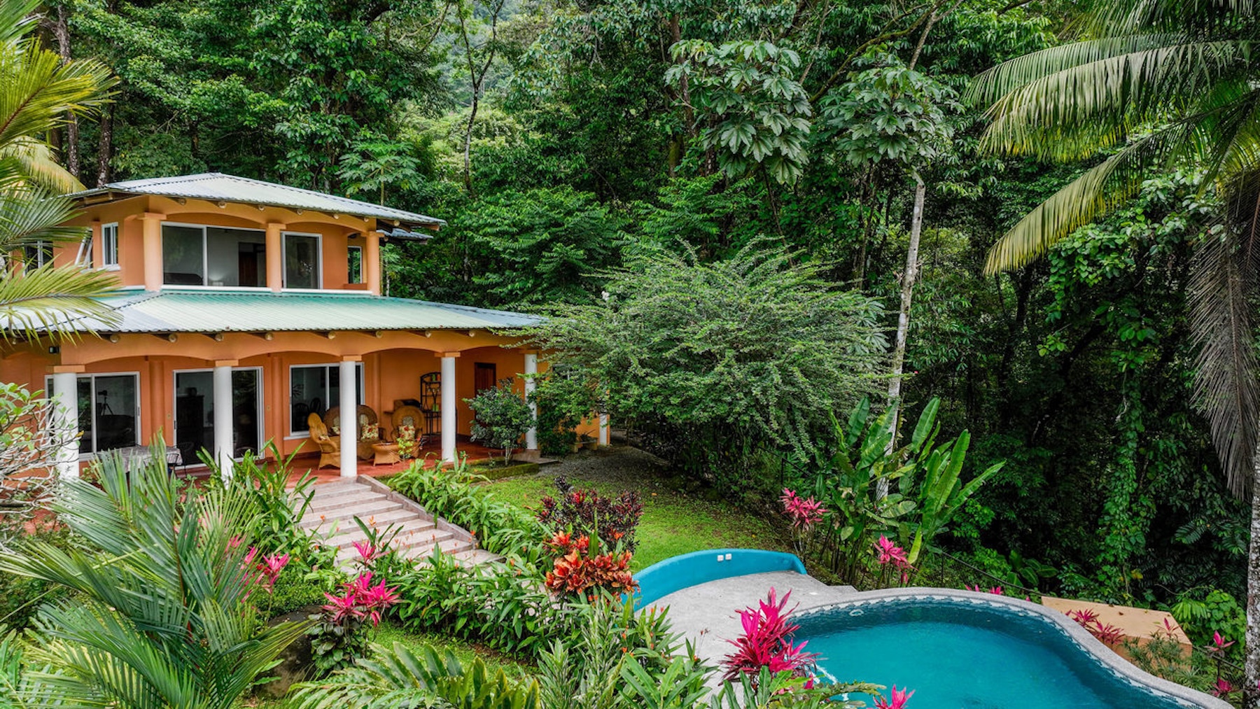 The property is surrounded by primary rainforest and crossed by a private creek, creating a vibrant setting where wildlife such as monkeys, toucans, and macaws are commonly seen. Despite its secluded feel, it is located in a quiet community between Uvita and Playa Dominical, with quick access to beaches, services, and attractions.