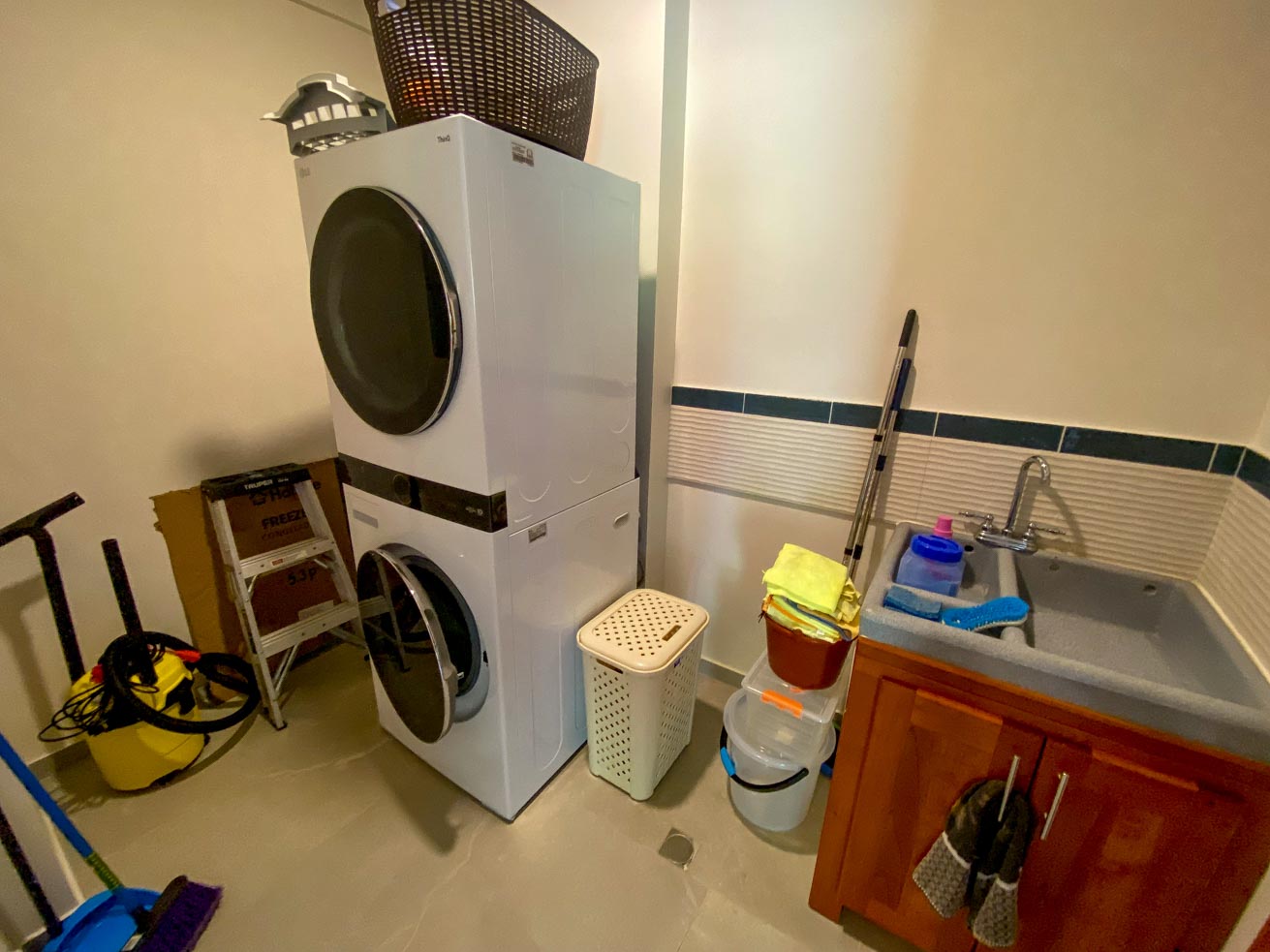The heart of the home is the large front patio, a covered space offering direct ocean views. Thanks to its excellent natural light and ventilation, it can be enjoyed in any weather, day or night. More than just a patio, it’s a true social space: equipped with a full kitchen (sink, minibar, gas stove, barbecue, ample countertops and cabinets), as well as a solid wood dining table and additional furniture. Its spaciousness surpasses even that of many guest houses.