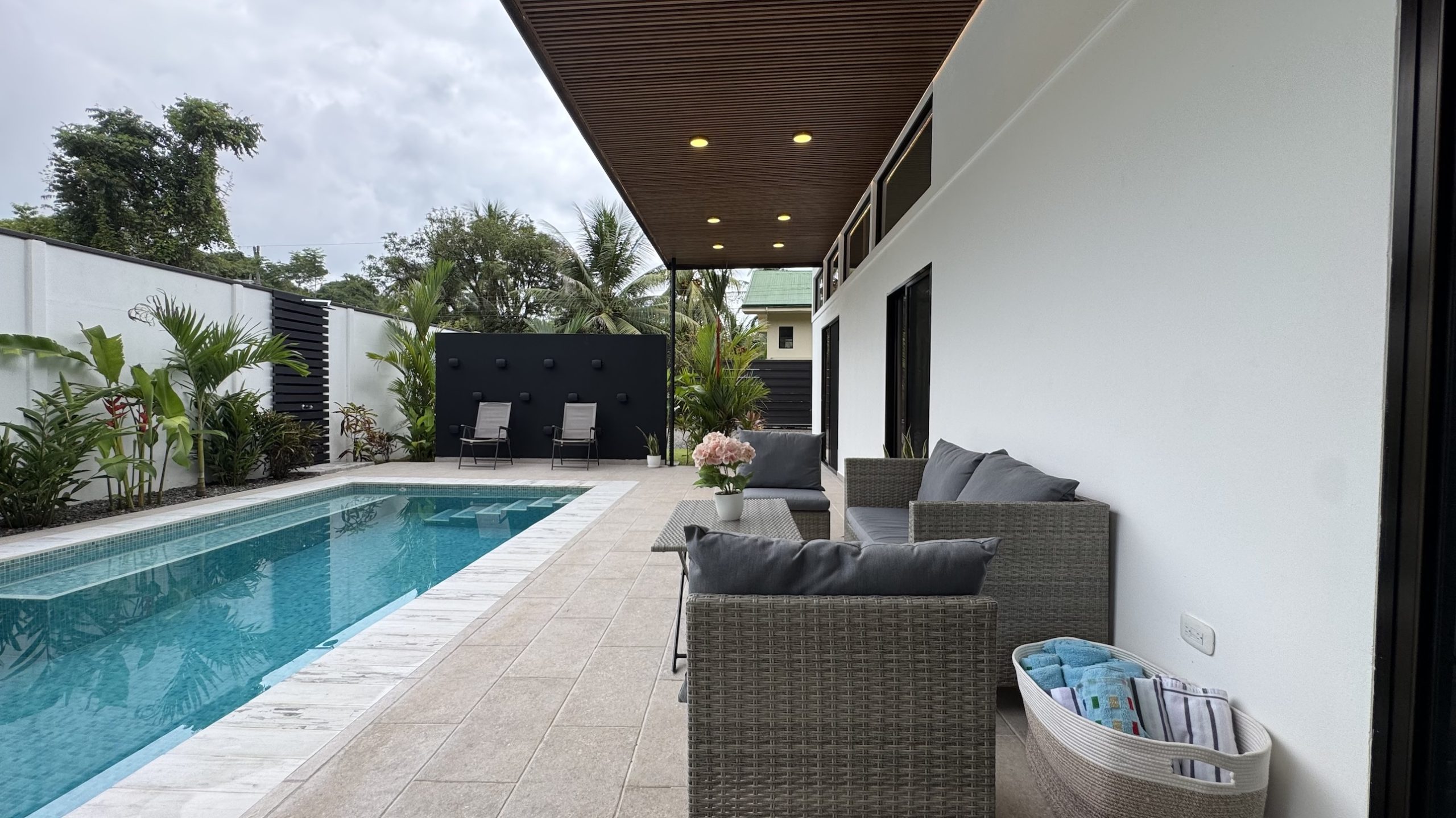 Esta elegante casa de 3 dormitorios y 2 baños presenta un diseño abierto que integra armoniosamente el interior con el exterior. La amplia terraza cubierta, la iluminación ambiental empotrada y las puertas corredizas de vidrio conducen a la piscina rodeada de jardines tropicales. Una zona de barbacoa al aire libre convierte el espacio en el lugar ideal para relajarse o recibir invitados.